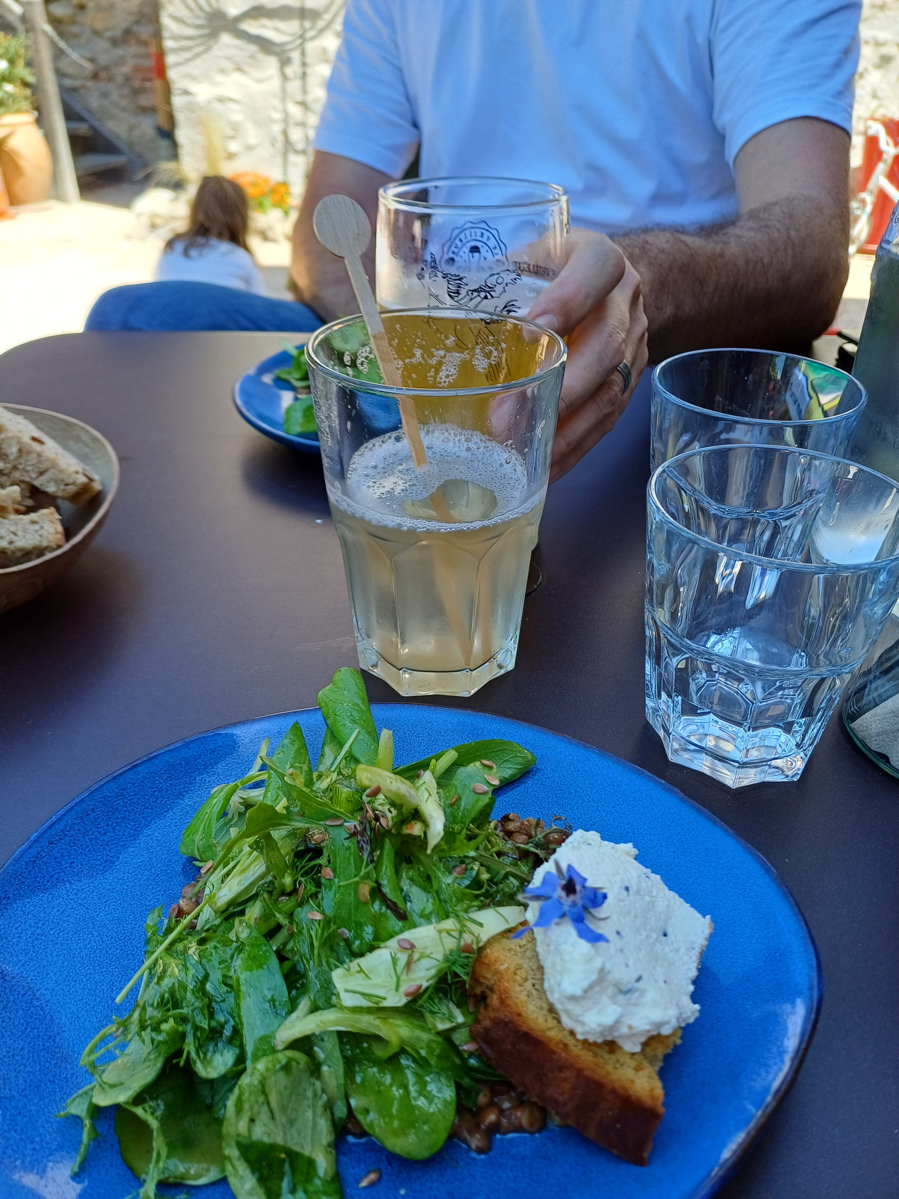 Venus pour boire un verre, le sirop de lavande divin, la bière artisanale extra et l ambiance chaleureuse Nous nous sommes laissés emporter pour le diner qui fût à la hauteur, avec de belles saveurs authentiques, des légumes , fleurs , fruits du jardin, charcuterie et fromage des producteurs voisins N hésitez à vous y arrêter !!