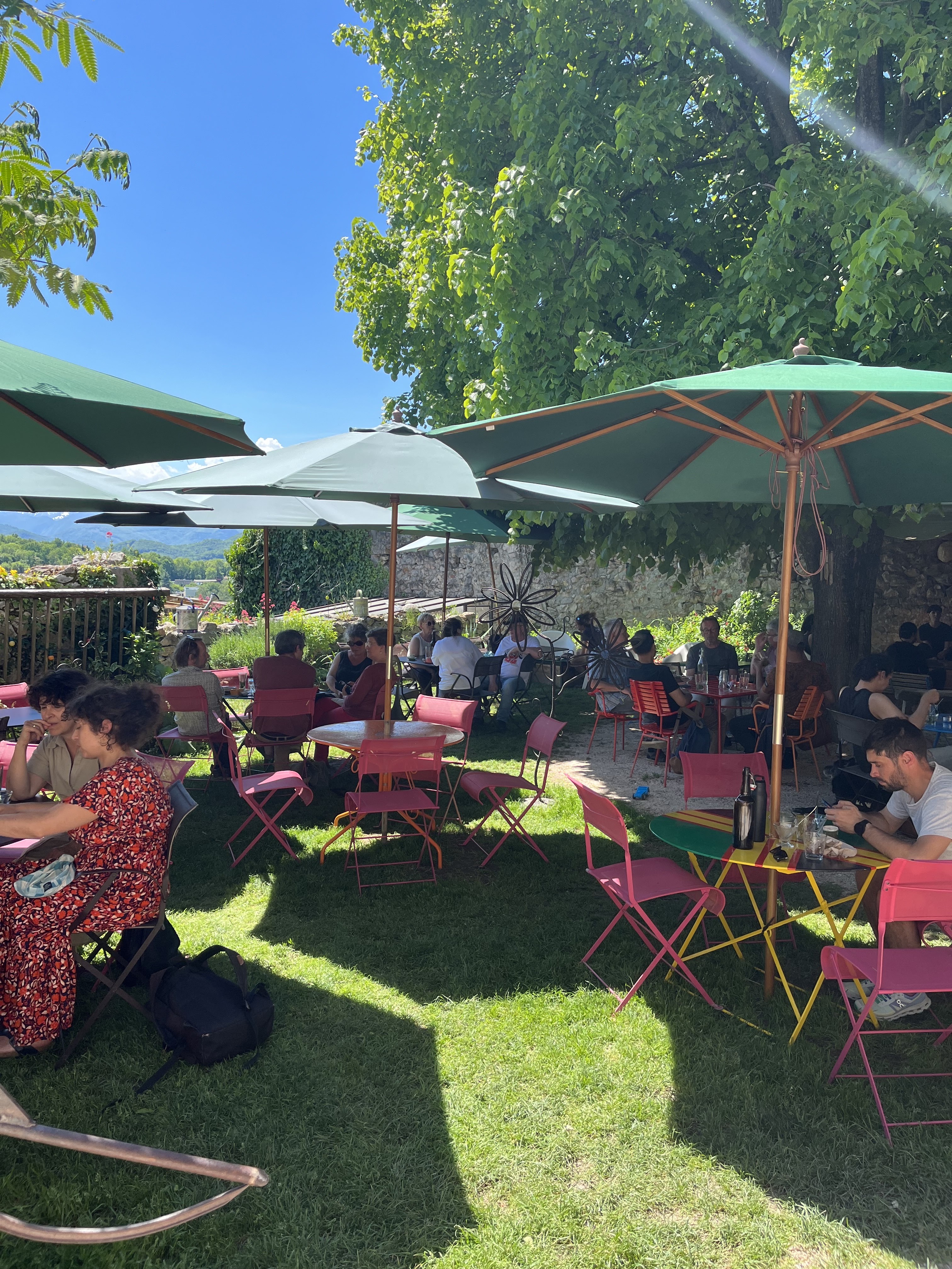 Beaucoup de guêpes mais le service est très agréable les boissons ne sont pas excellentes mais restent correcte Cependant le client est plonge dans un univers écologique entouré par un potager exceptionnel et une très belle vue sur la vallée.