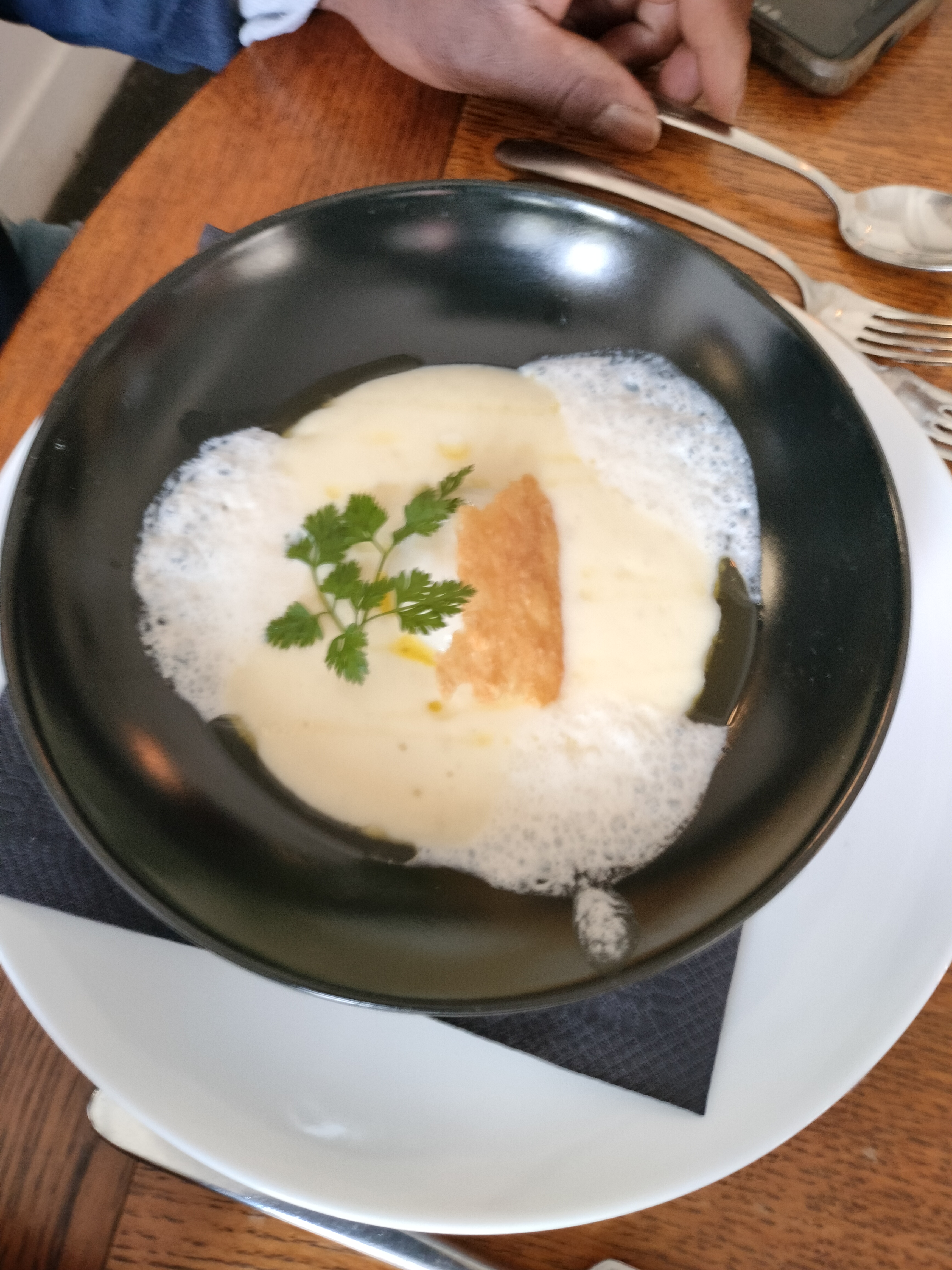 Expérience pas catastrophique mais plusieurs petites choses qui ne vont pas surtout lorsqu’on est référencé dans le Michelin : Entrée gravlax très minimaliste en quantité ( 4 petites portions ) Cocotte de légumes : aucun assaisonnement qui aurait pu sublimé les légumes… c’est une poêlée de légumes, point ! J’ai eu un doute sur les haricots verts frais… Anecdote : nous allons au restaurant 3 à 4 fois par semaine : je suis peut-être vieux jeu mais ça fait un bail qu’un serveur ne m’avait pas tendu l’assiette au lieu de la poser sur la table 🤔 Déçu également par l’assiette de fromage : le chèvre est pour moi pasteurisé et le brie trop vieux ! Le comté était bon. Le café fut à l’appréciation générale assez mauvais, je ne l’ai pas fini pour ma part. J’ai été également surpris par la carte des vins ou certains vins coûtent plus de 300 € alors que la carte reste dans sa grande majorité non gastronomique ou en tout cas assez traditionnelle.