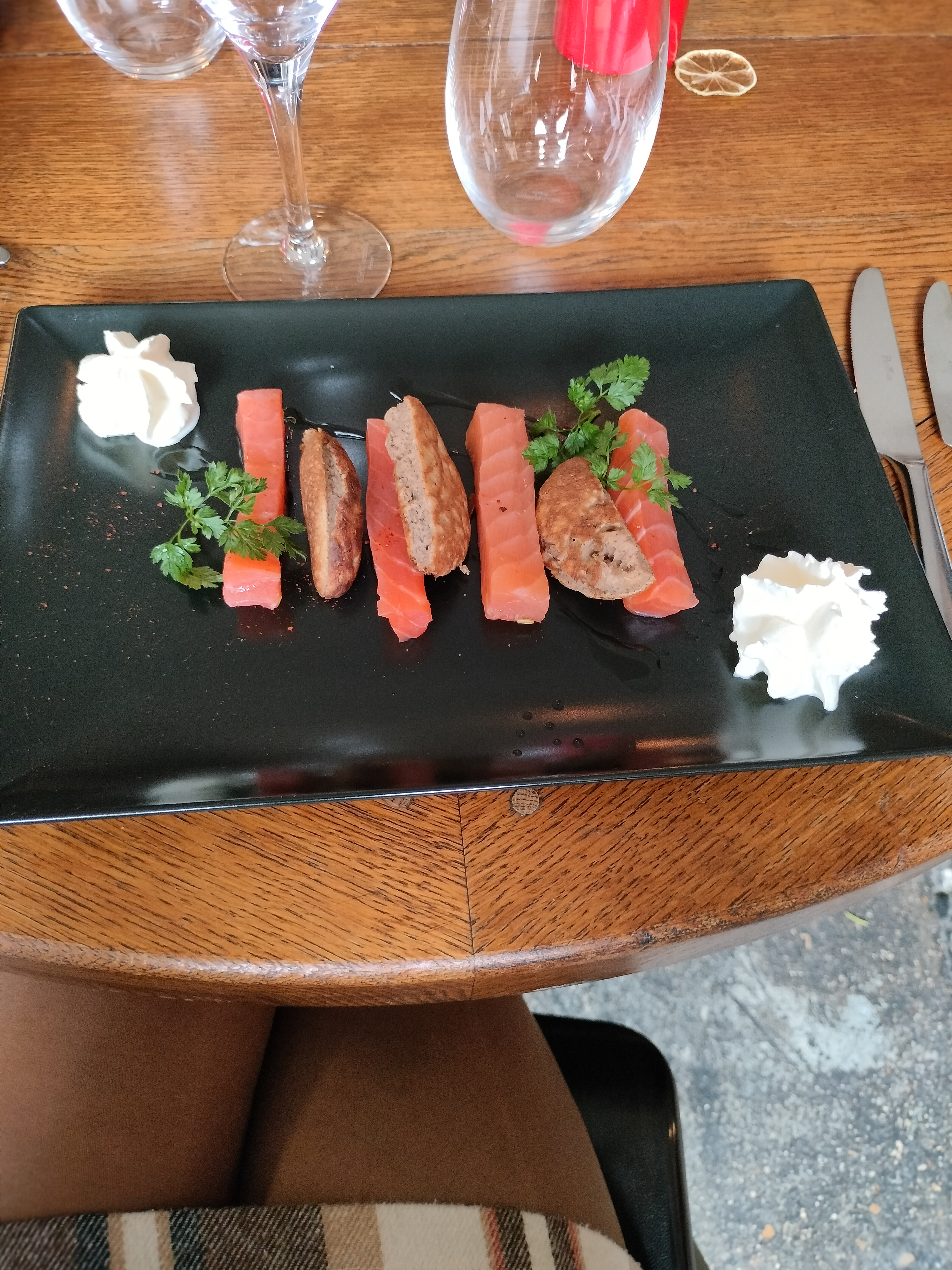 Magnifique bavette, gravlax de saumon et savarin. Très bon service.