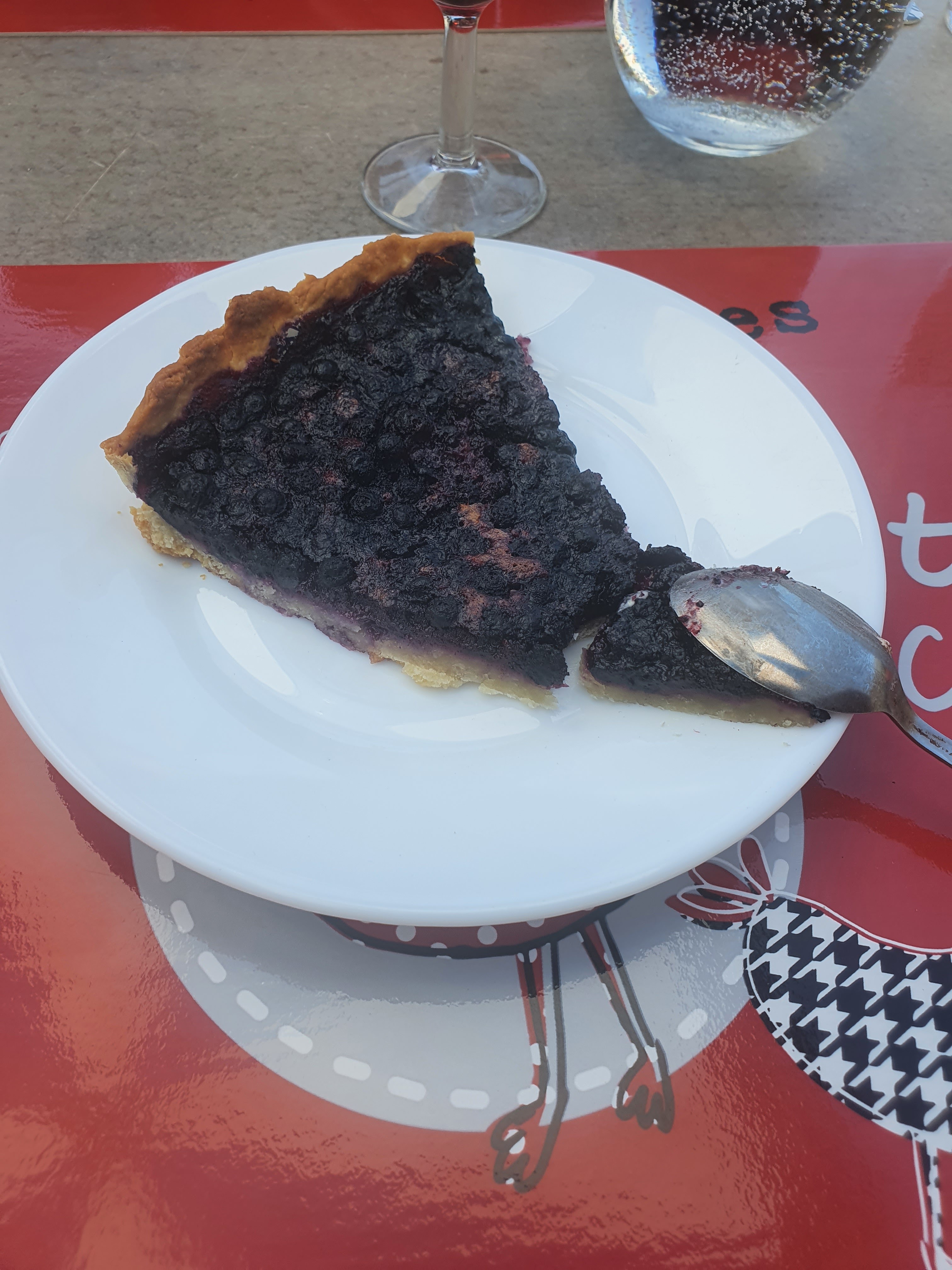 Lieu idéal pour une pose bien méritée après une session de ski nordique. La tarte aux myrtilles 😋😋😋