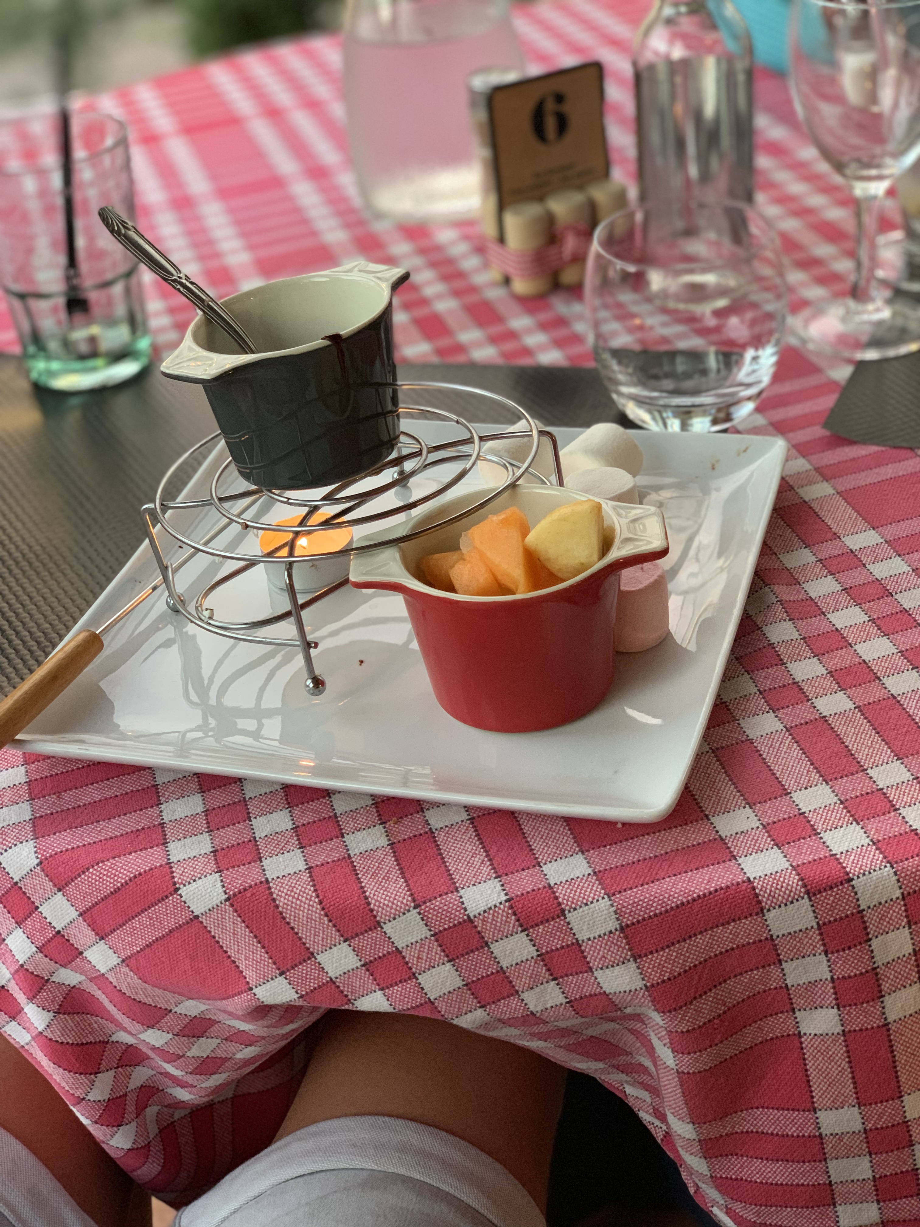 Fondue bourguignonne excellente, personnel sympathique, et on peut y aller avec nos compagnons à 4 pattes.