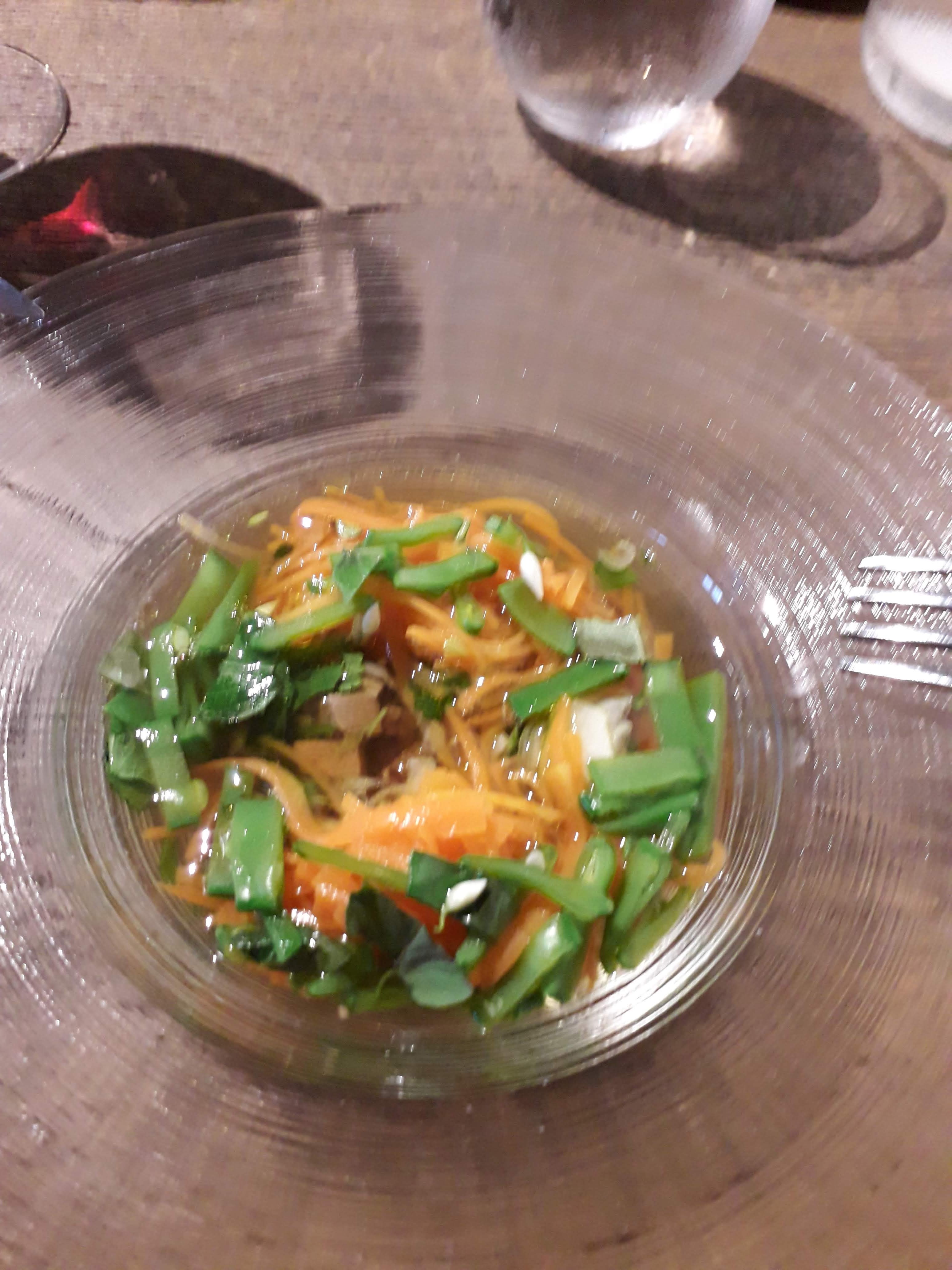excellent !!savant assemblage de saveurs subtiles ! produits locaux ,de saison , bio .raffinement de la présentation ?de quoi ravir les papilles et les yeux,avec en plus un accueil chaleureux