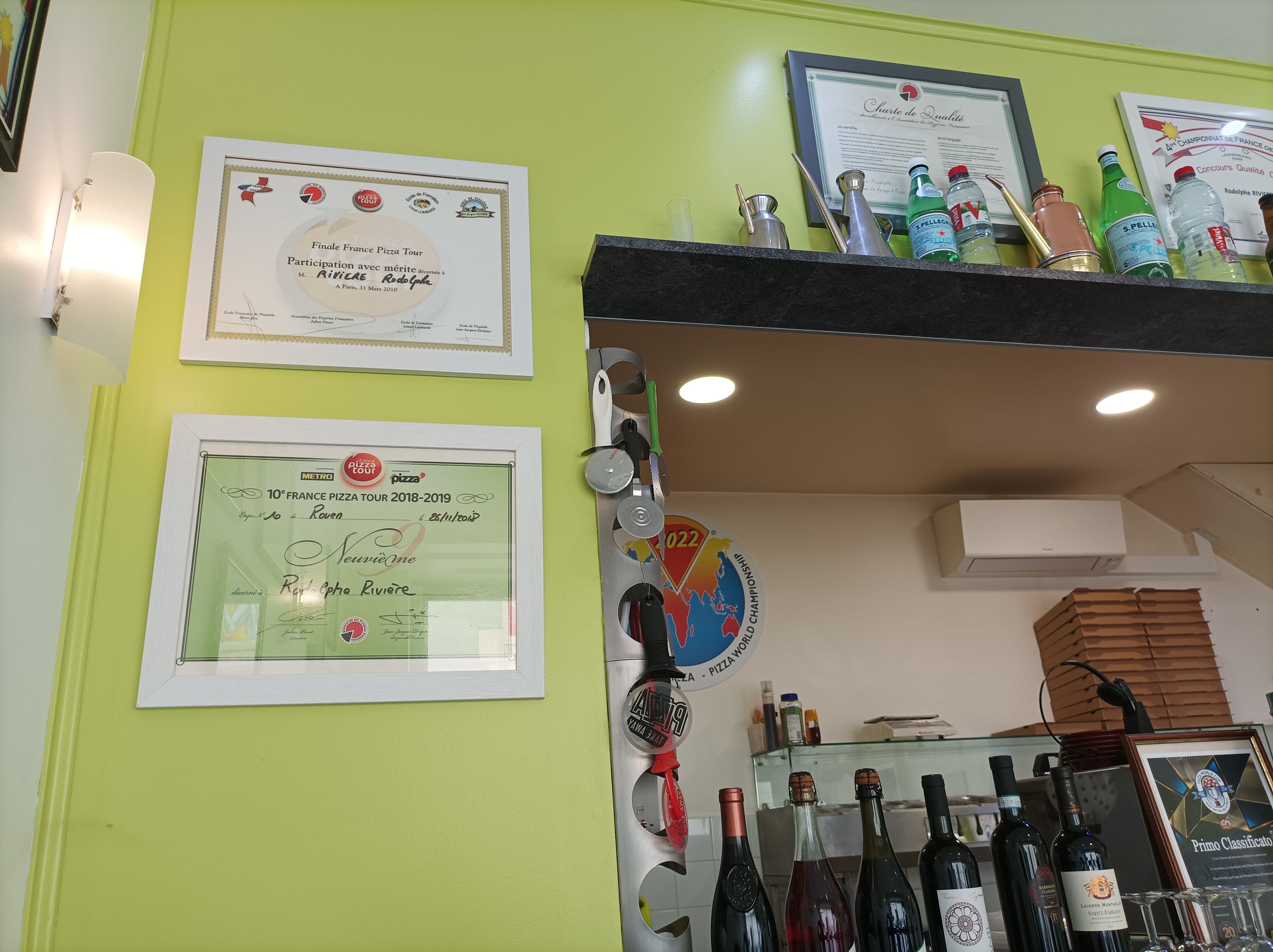 Excellente surprise avec un accueil chaleureux et le nombre de coupes exposées vous fait comprendre que ça va être une tres bonne pizza 😁