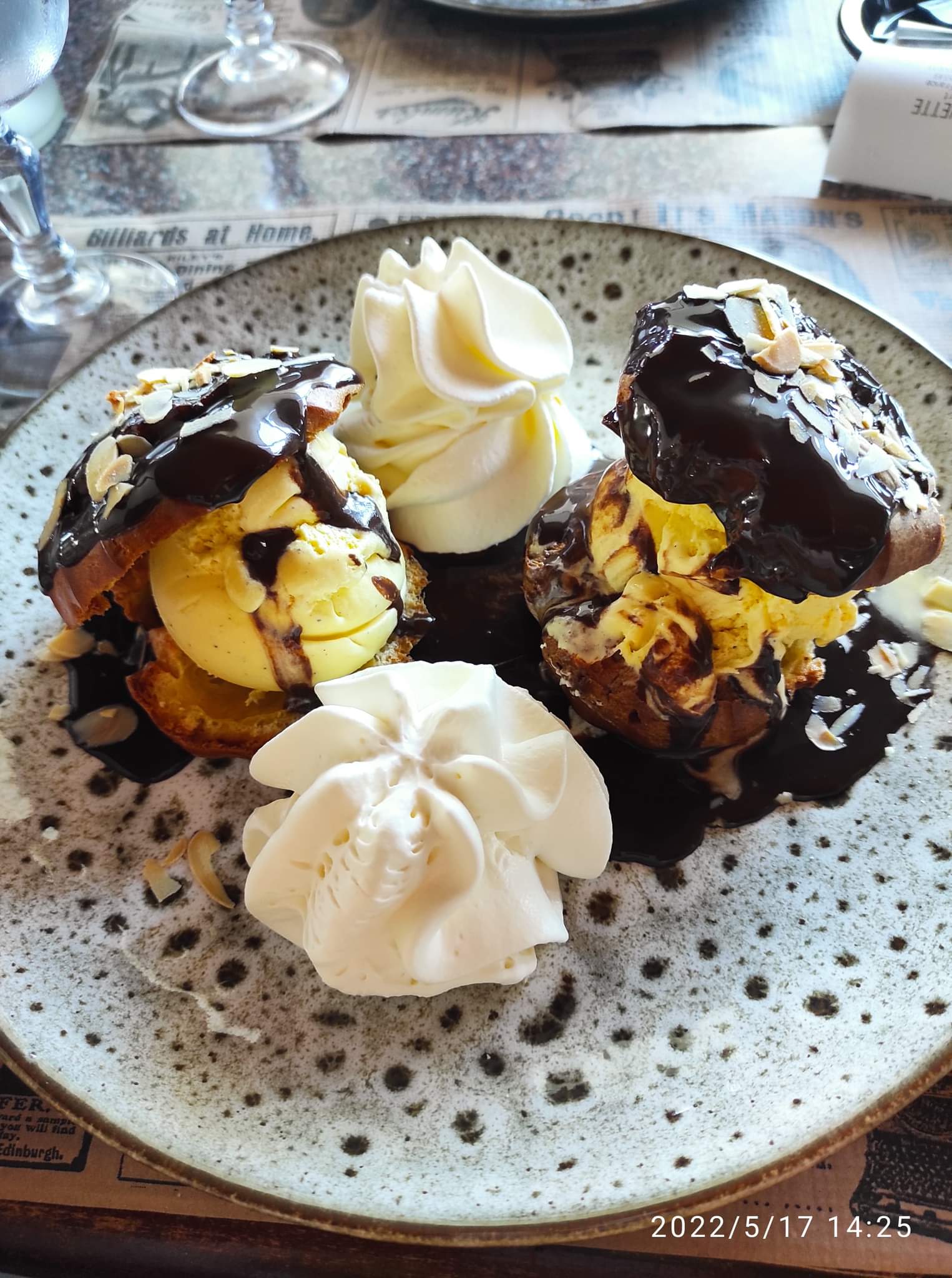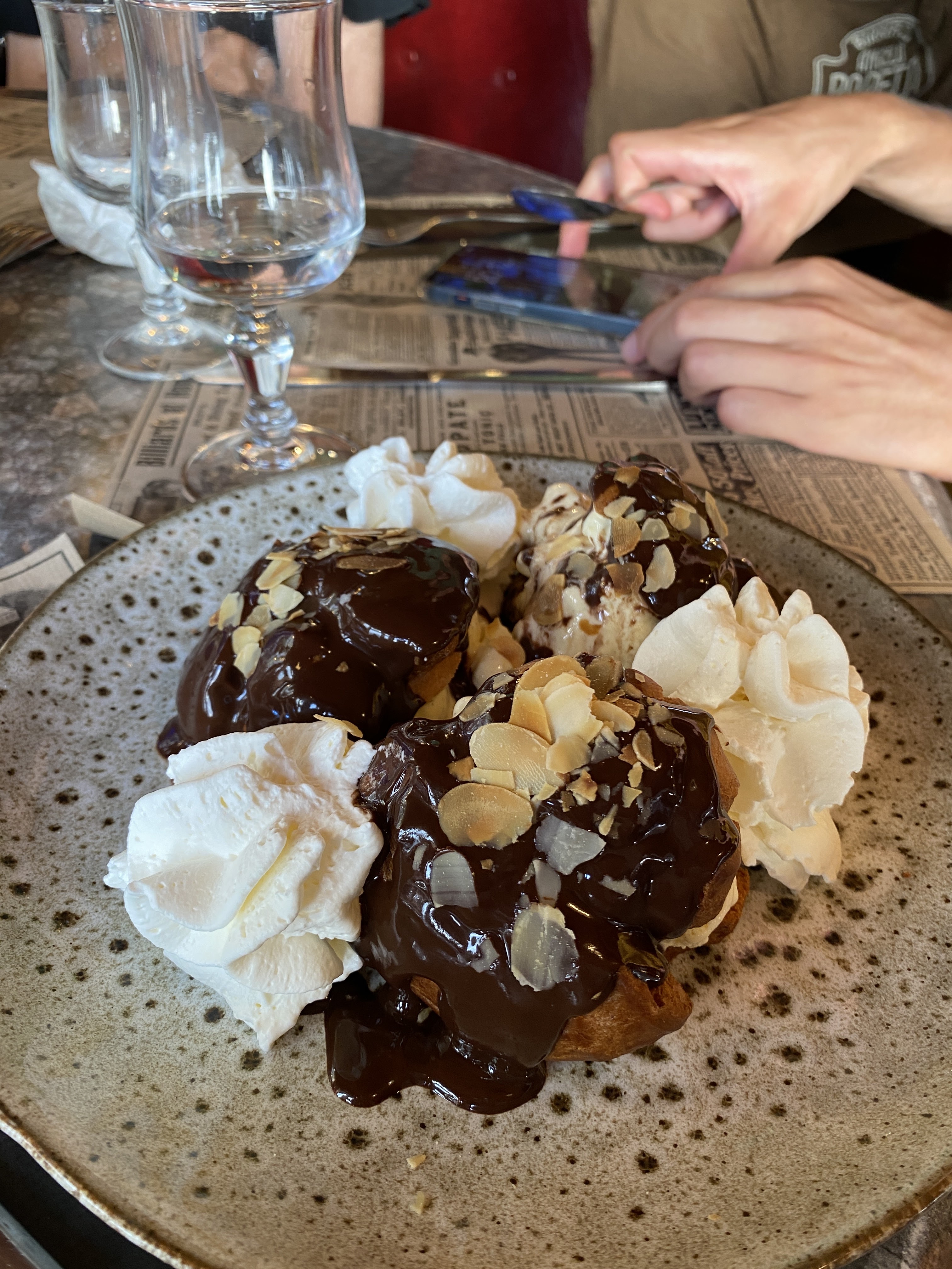Très bel endroit et un très bon service avec des salades gourmandes et savoureuses ... le petit plus les profiteroles en dessert 🍨
