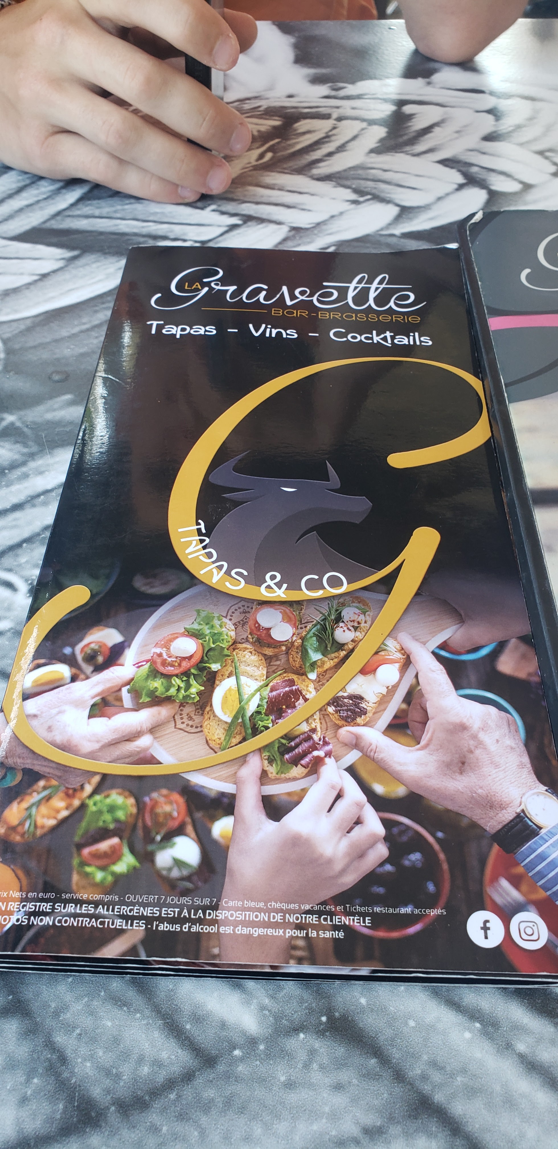 Nous avons appelé en début d'après midi pour savoir si on pouvait venir pour boire un coup, un jeune homme nous a répondu que non exceptionnellement s était fermé jusqu'à 18h. Nous étions en ballade au port et nous voyons que la gravette est ouverte nous y allons et demandons si nous pouvons nous installer,. La patrone sûrement nous reçoit bien et nous dis mais oui pas de soucis. Alors là bonne surprise !!!!!!!! Nous commandons des milk shacke fraise et un jeune homme nous sers du lait a la fraise.....il serai bien du faire une réunion d'équipe et de former...............