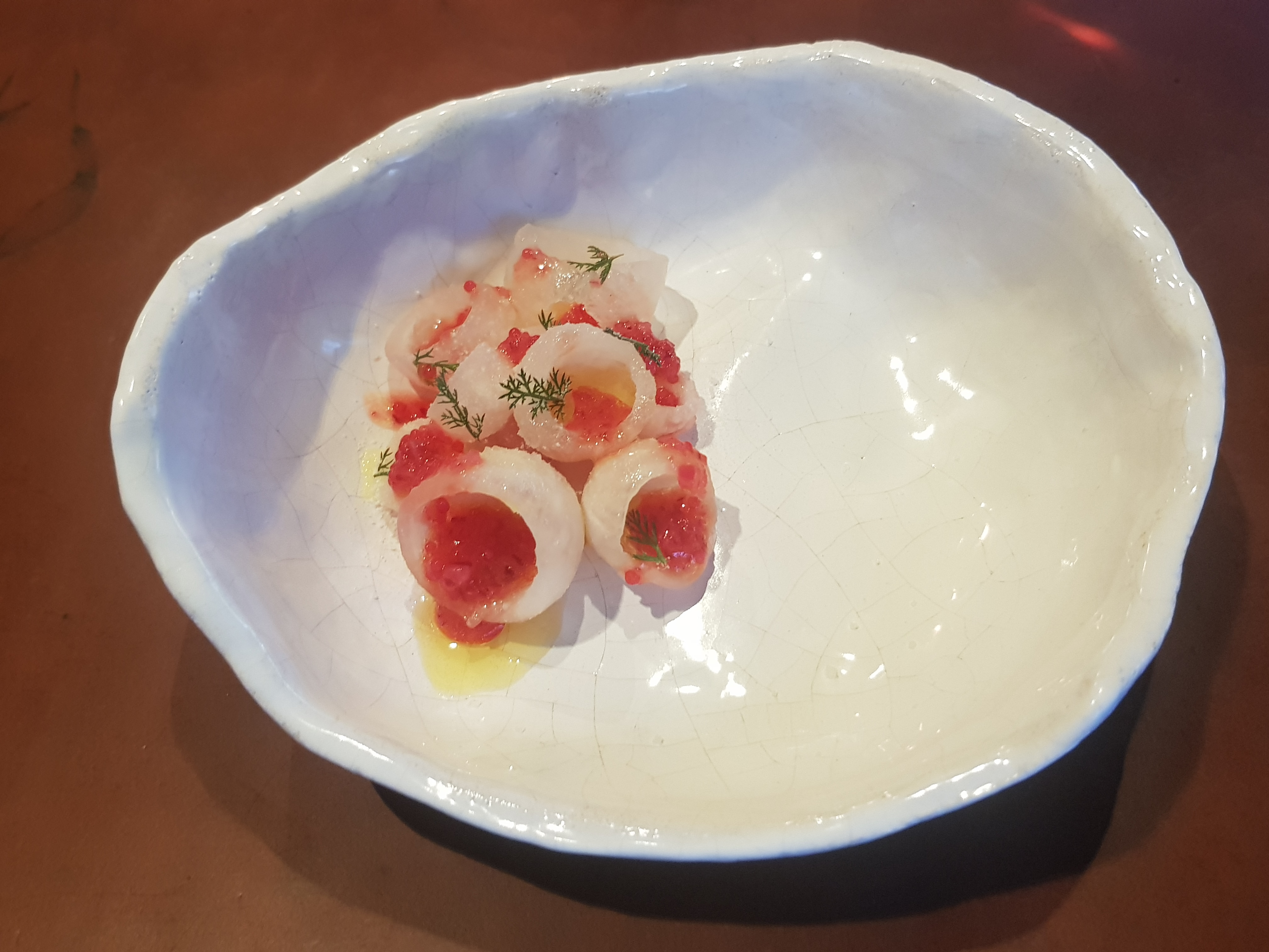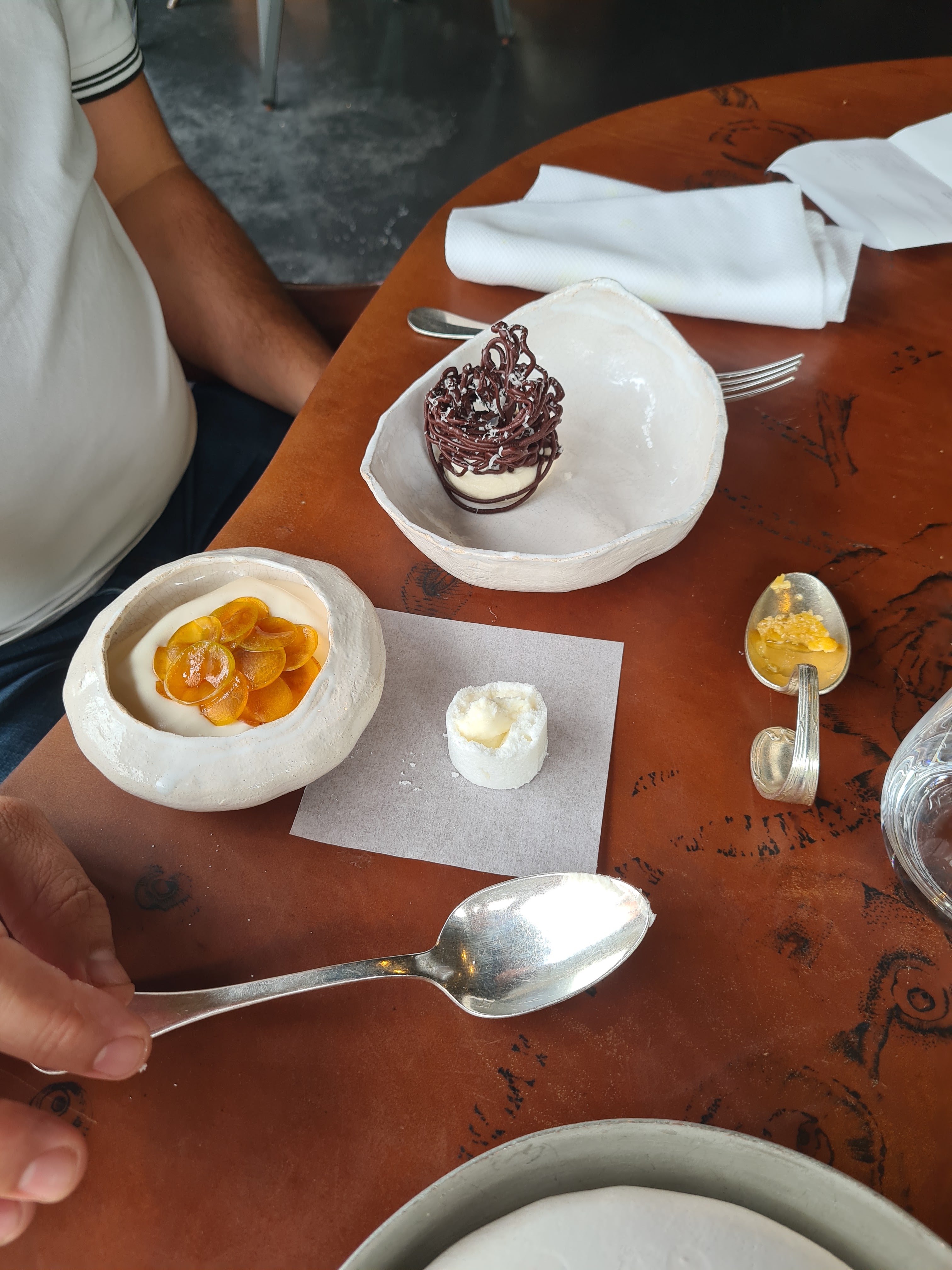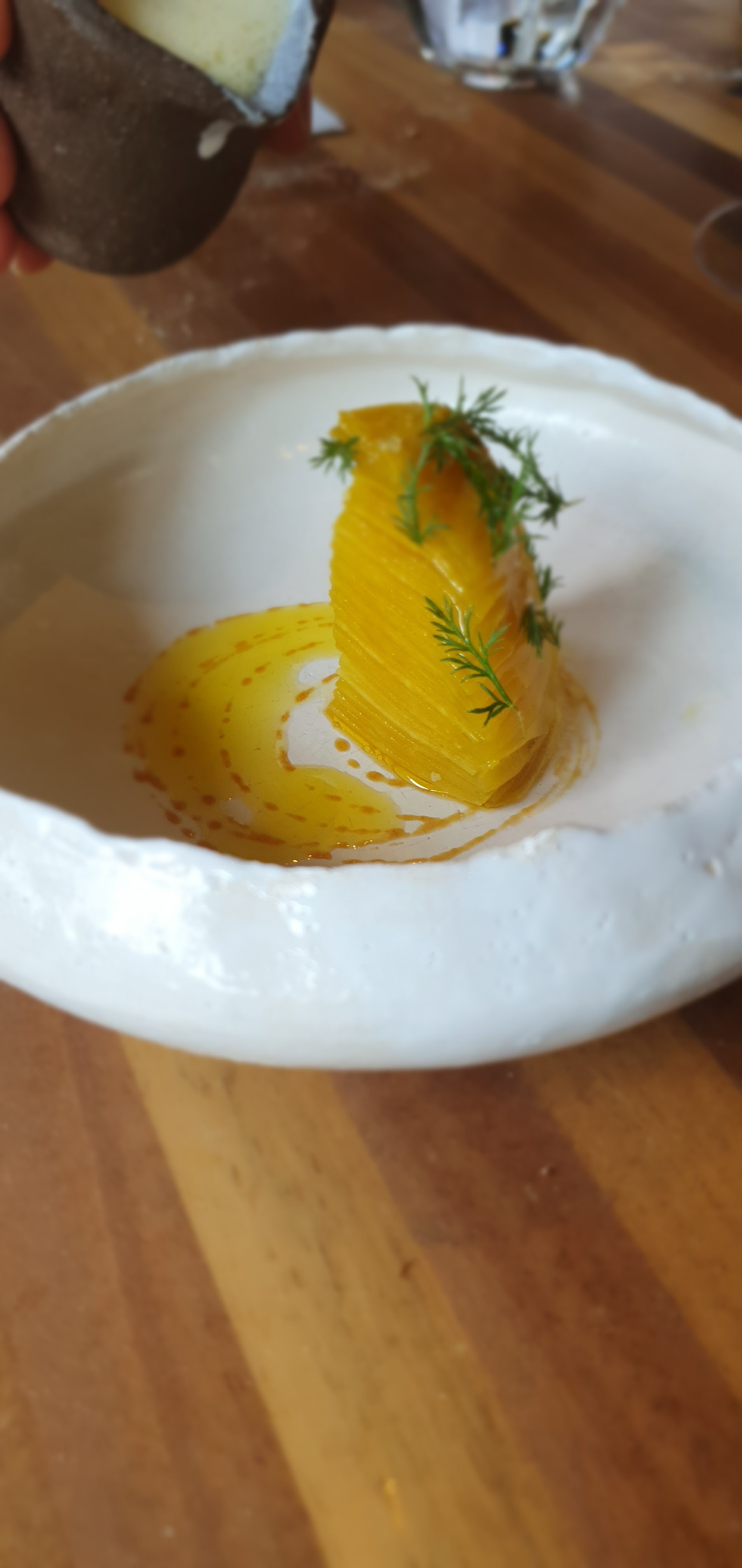 Assez mitigé. >> Le lieu est assez dingue et le travail sur les matières et ambiances très réussi. Pour cela je donne assurément 5 étoiles. >> la food. 11 plats + les mignardises et amuses bouche. Il y a assurément de très bonnes choses - surtout le blini de crabe vraiment dingue, le ravioli pourpre et l’asperge - et tout est sans fautes mais ça manque presque de corps. Ça tire dans tous les sens par petites notes inégales mais on voudrait un moment que le chef s’attarde un peu plus sur un plat, qu’on rentre plus dans la matière. Résultat, à part les 3 plats cités j’ai presque oublié le reste. >> Accord mets et vin : un peu cher pour ce que c’est. Pas de grosse surprise ou découverte. >>Service : un peu pressé / stressé. La jeunesse peut être. On aurait aimé un serveur qui prenne le temps de nous raconter de belles histoires. Il ne restait que nous et une autre table à la fin. Le chef n’est venu qu’à l’autre table.
