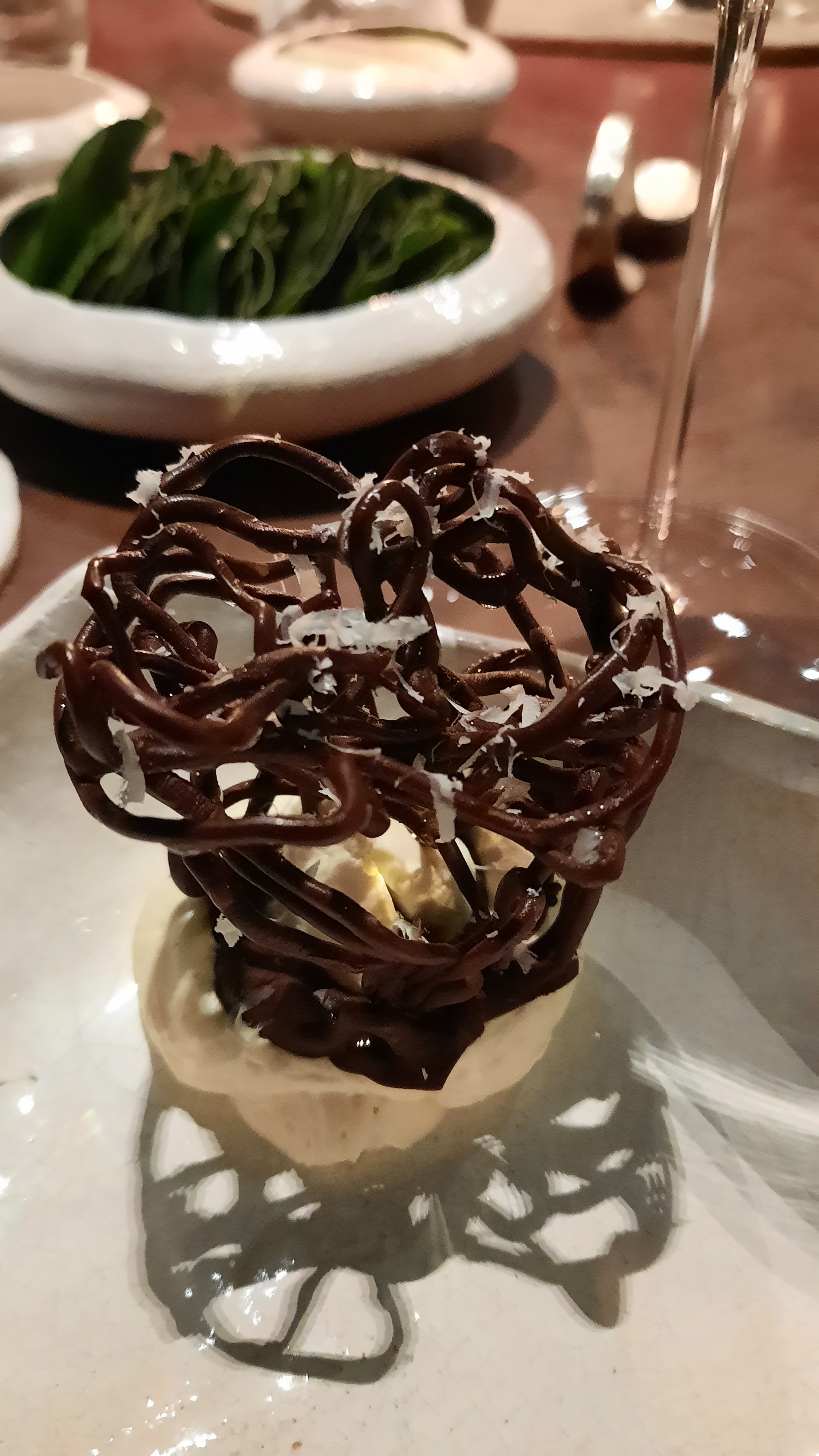 Restaurant magique… Un voyage culinaire incroyable, assiette parfaite, lieu unique et personnel nombreux et qualifié !! Grande cuisine ou tout est exécuté devant nos yeux. Je ne mettrai qu’une photo car le reste du repas fait partie de la magie et des instants si particuliers vécus la bas. Vous aimez la grande gastronomie, vous ne serez pas déçu ! PS : pensez à réserver assez longtemps à l’avance.