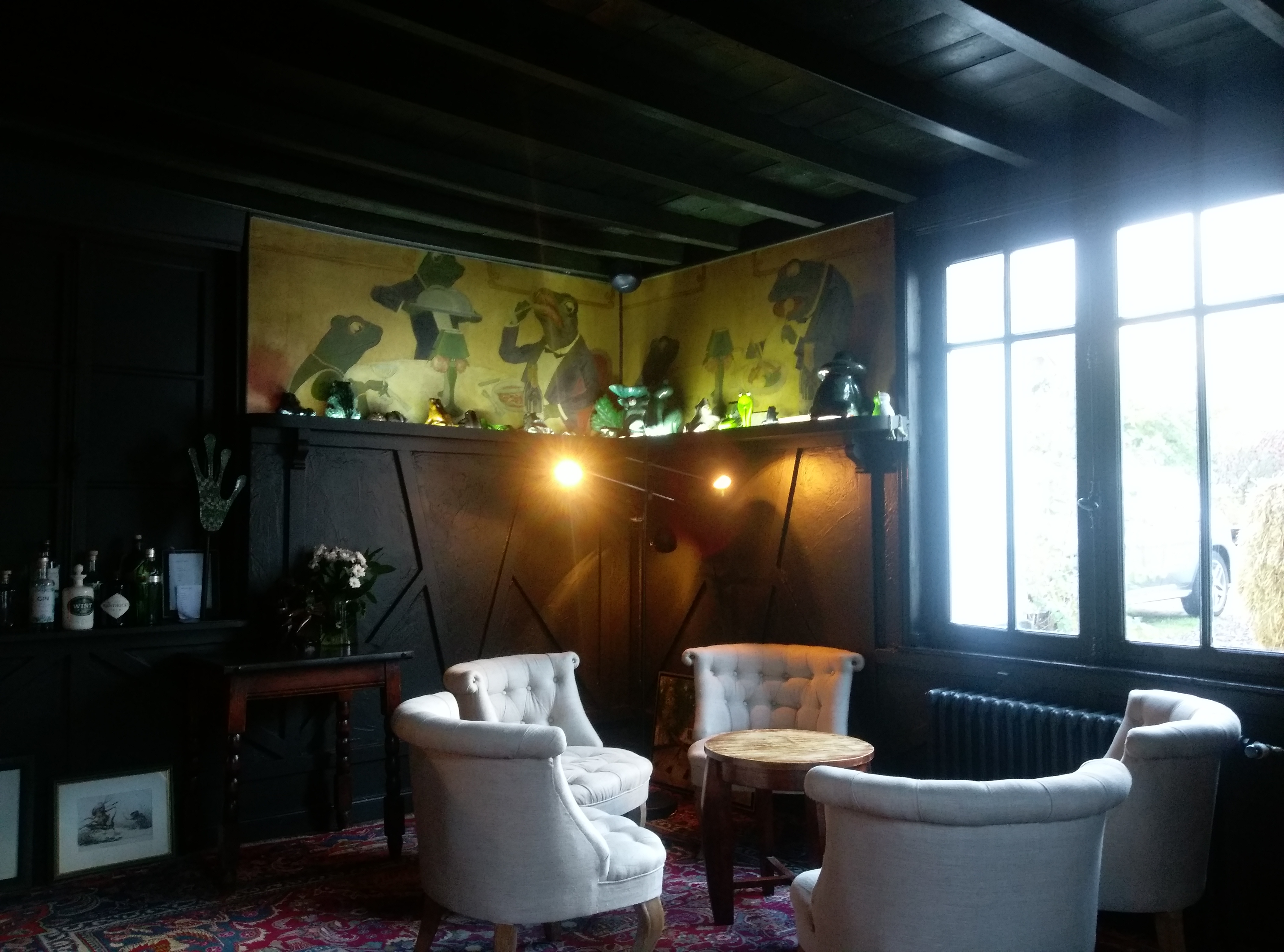 Un vrai bon moment de vie! Partis de Paris dans la matinée, nous arrivons à la grenouillère vers 12h30. Après un apéritifs dans un petit salon de plus de 300 ans (et autour d’un petit feu de cheminé) nous nous dirigeons dans cette superbe salle. La lumière fait partie de l’architecture et c’est vraiment très agréable! Dans l’assiette c’est l’éclate totale! 9 plats qui ne se ressemble pas. Tout n’est au au même niveau mais c’est vraiment excellent. Pour moi ? La raviole, le blini et l’aubergine! Retour au petit salon pour un digestif et après avoir longuement parlé avec le maire d’hôtel on quitte les lieux un peu triste de ne pas rester pour dîner! Il paraît que pour vraiment apprécier La Grenouillère, il faut y dormir !
