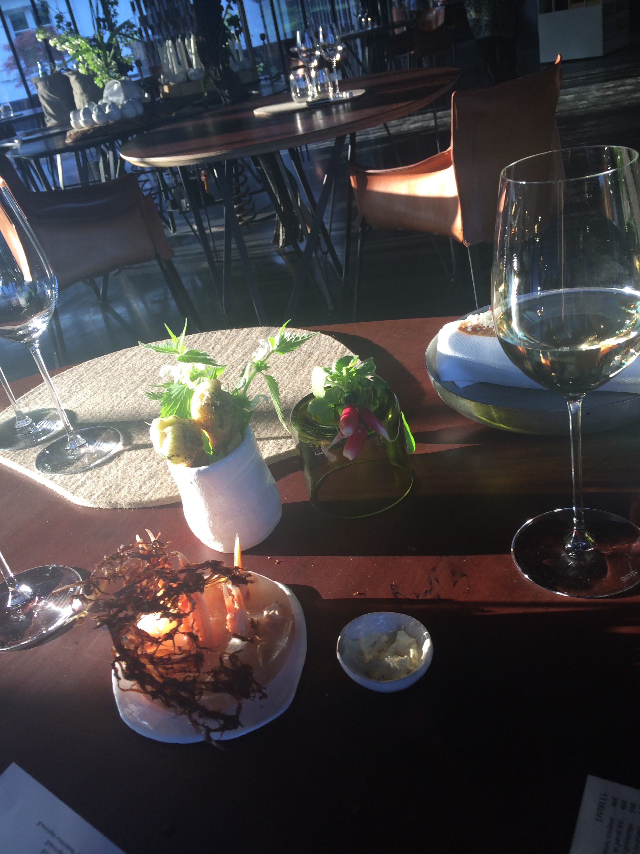 Exceptionnel ! Expérience culinaire contemporaine et unique, dans un cadre magnifique le midi, mais sombre le soir. Service aux petits soins mais pas envahissant. Menu en 9 services à 90€, incluant apéritif et eau à discrétion. Rapport qualité /prix parfait.