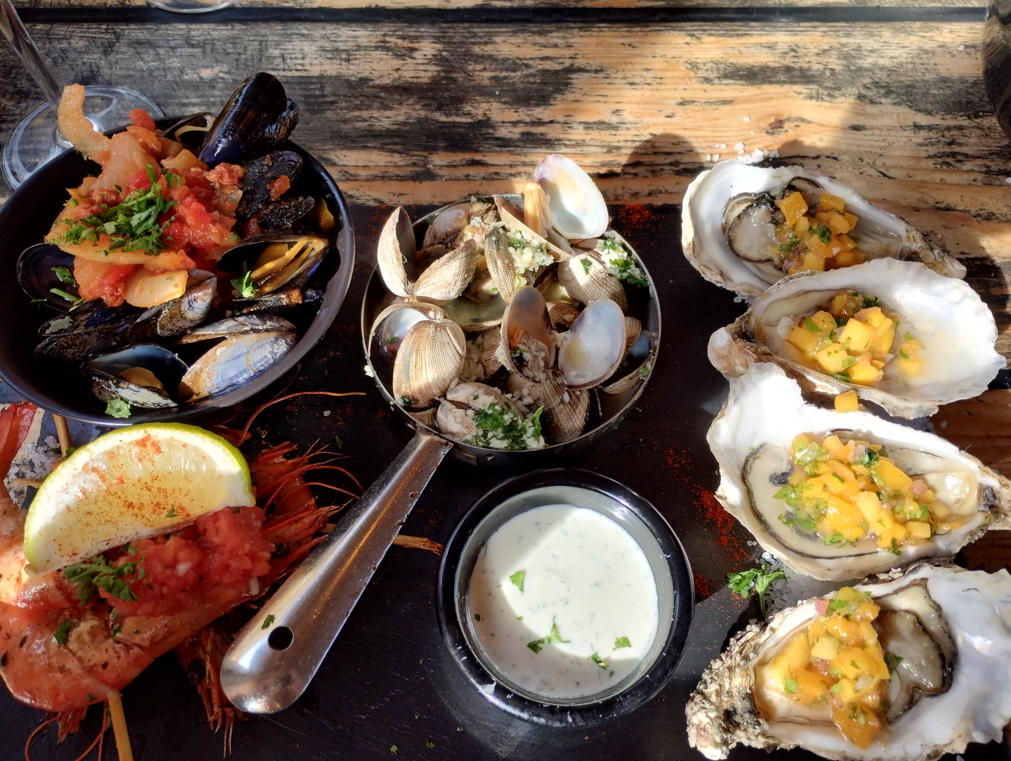 Très bel emplacement, personnel sympathique, bon service, excellents tapas, bons crustacés, Gambas. Les huîtres fraîches que j'aime un peu plus fraîches.