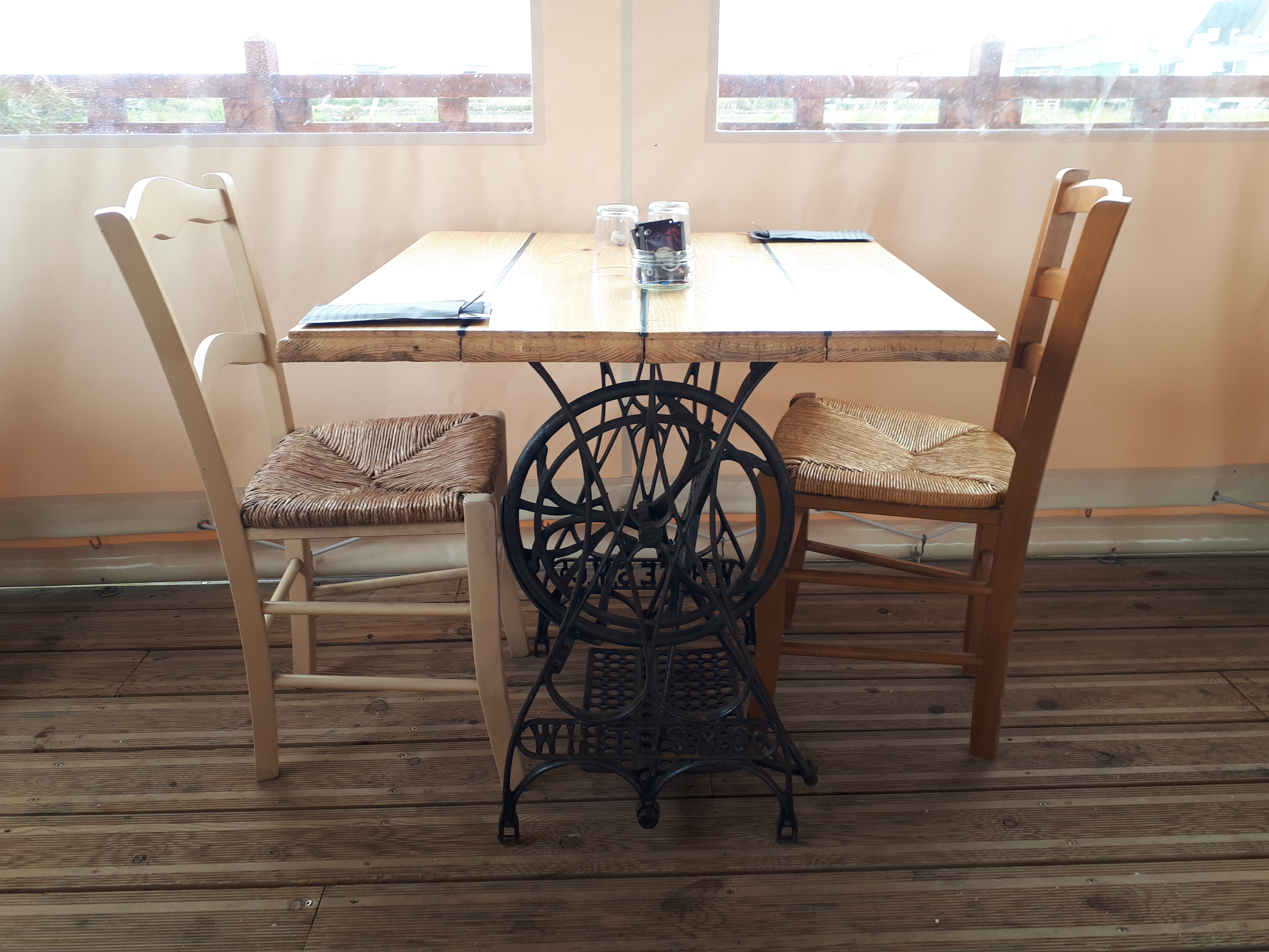 Stop Arrêt pour un moment de plaisir simple avec des vues magiques sur le parc ostréicole Établissement terrasses avec un super accueil de jeunes restaurateurs souriants(es) qui ont la passion et le dynamisme de promouvoir le monde ostréicole 👌👏👍 L endroit est magnifiquement décoré avec leurs pieds de tables issues d anciennes machines à coudre Singer et autres qu'ils ont eu l idée une seconde chance de vie et que d honneur pour celles ci de finir dans un cadre de travail comme le vôtre 👍 Les produits de la mer sont excellents et choix de votre carte permettant la diversité est appréciable Le petit rosé bio d Arvert excellent Juste une petite remarque: essayer de mettre moins de poivre surtout moulu, le grain diffuse et ne colle pas aux produits cuisinés car cela atténue vraiment toutes les saveurs naturelles des bulots et la finesse des langoustines,dommage ,c est mon avis personnel 👍 Tout le monde n aime manger hyper poivré et que cela plaise à un majorité😉 Bravos et mercis à vous tous pour moment dépaysant de nos vacances À bientôt