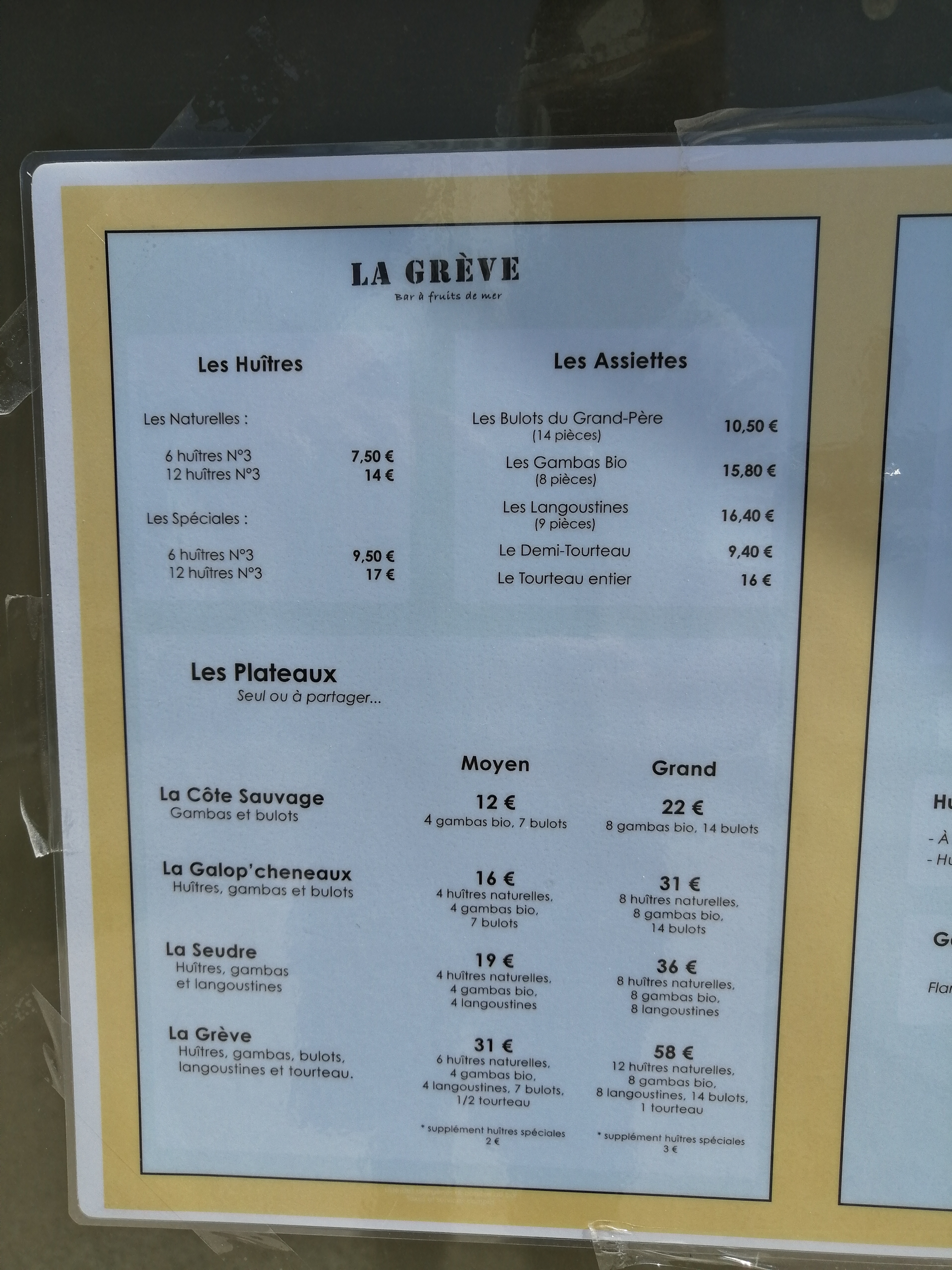 Habitués des grands restaurants parisiens de fruits de mer, la Grève est au dessus du panier. Excellente cuisine, saveur délicate, fine, et originale (huîtres ceviche à la mangue ; palourdes, moules au curry et profiterole).... dans un cadre calme et agréable, avec un responsable très arrangeant et sympa.