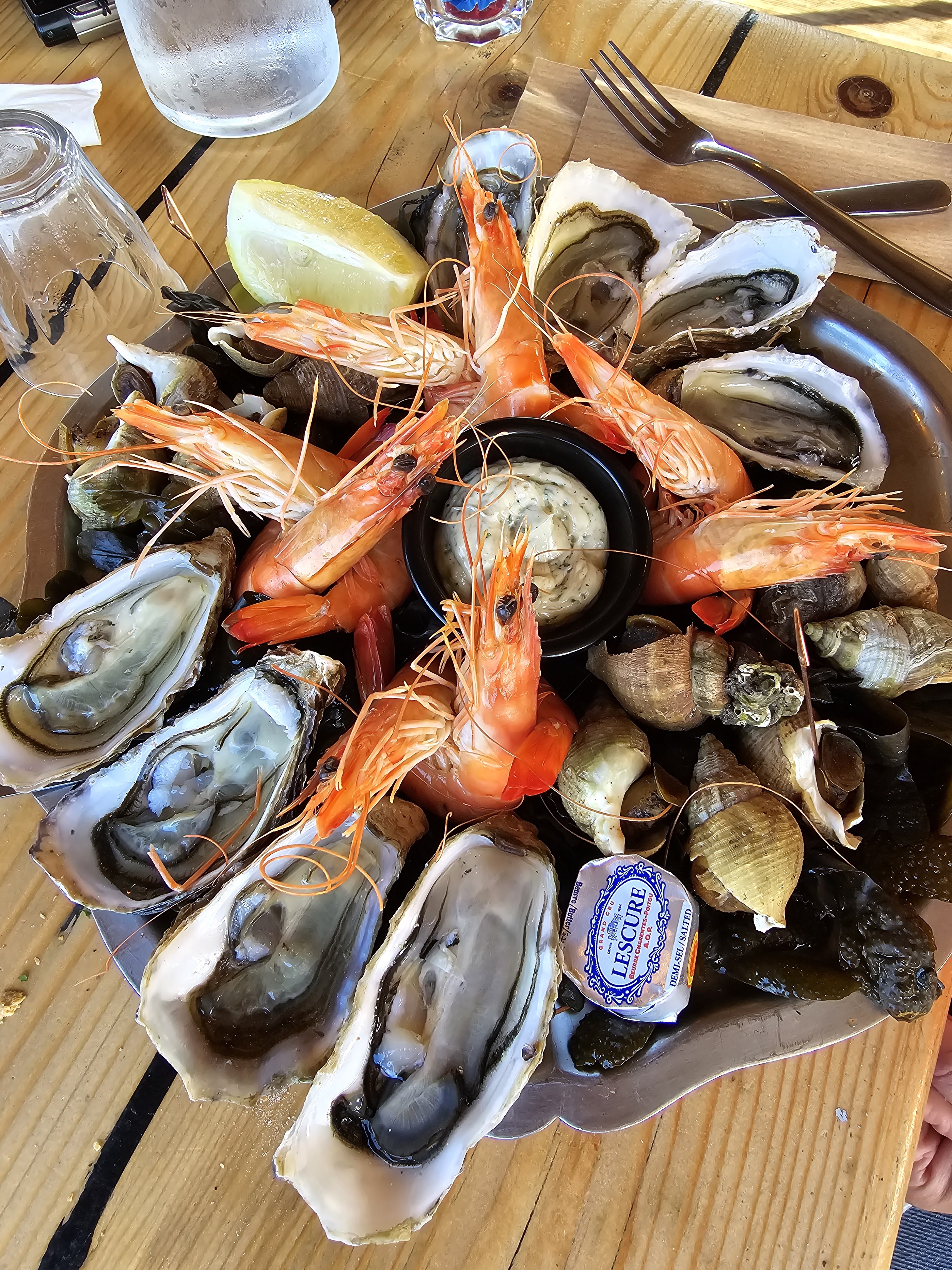 Excellent moment ! Assiette de la mer copieuse avec des bulots, du tourteau, des huîtres, des gambas ou encore des langoustines. Sans parler des moules à la fourme d’Ambert.