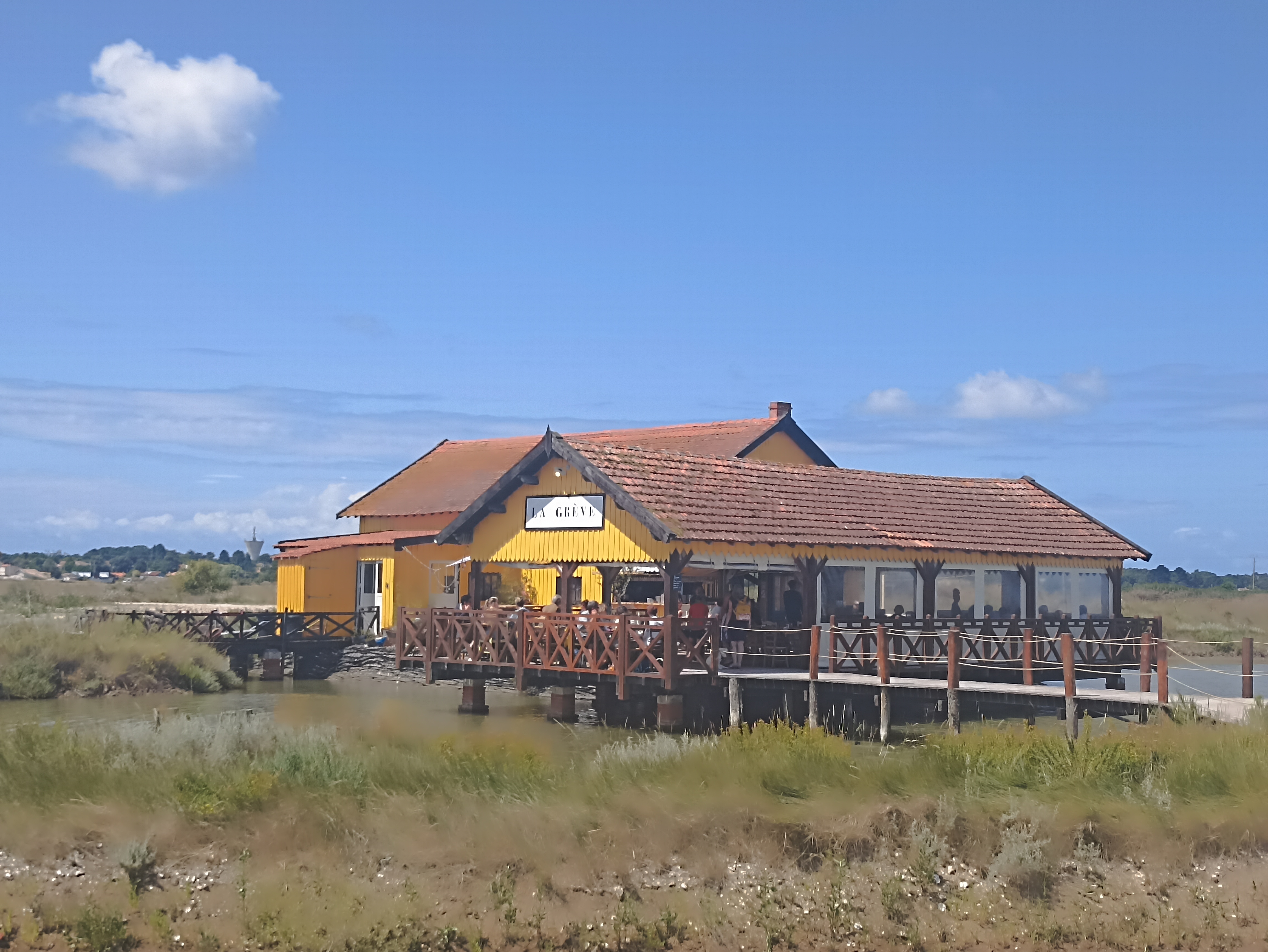 Le lieu est tout d'abord incroyable avec une magnifique vue sur les marais, en retrait de la route principale très fréquentée. De plus, l'accueil et le service sont très agréable, la serveuse que j'ai eu était très aimable et bienveillante. Toute l'équipe est jeune, dynamique et souriante. Quant aux plats, que ce soit les huîtres gratinées aux poireaux, les moules ou les frites, rien à redire ! Je conseille fortement !