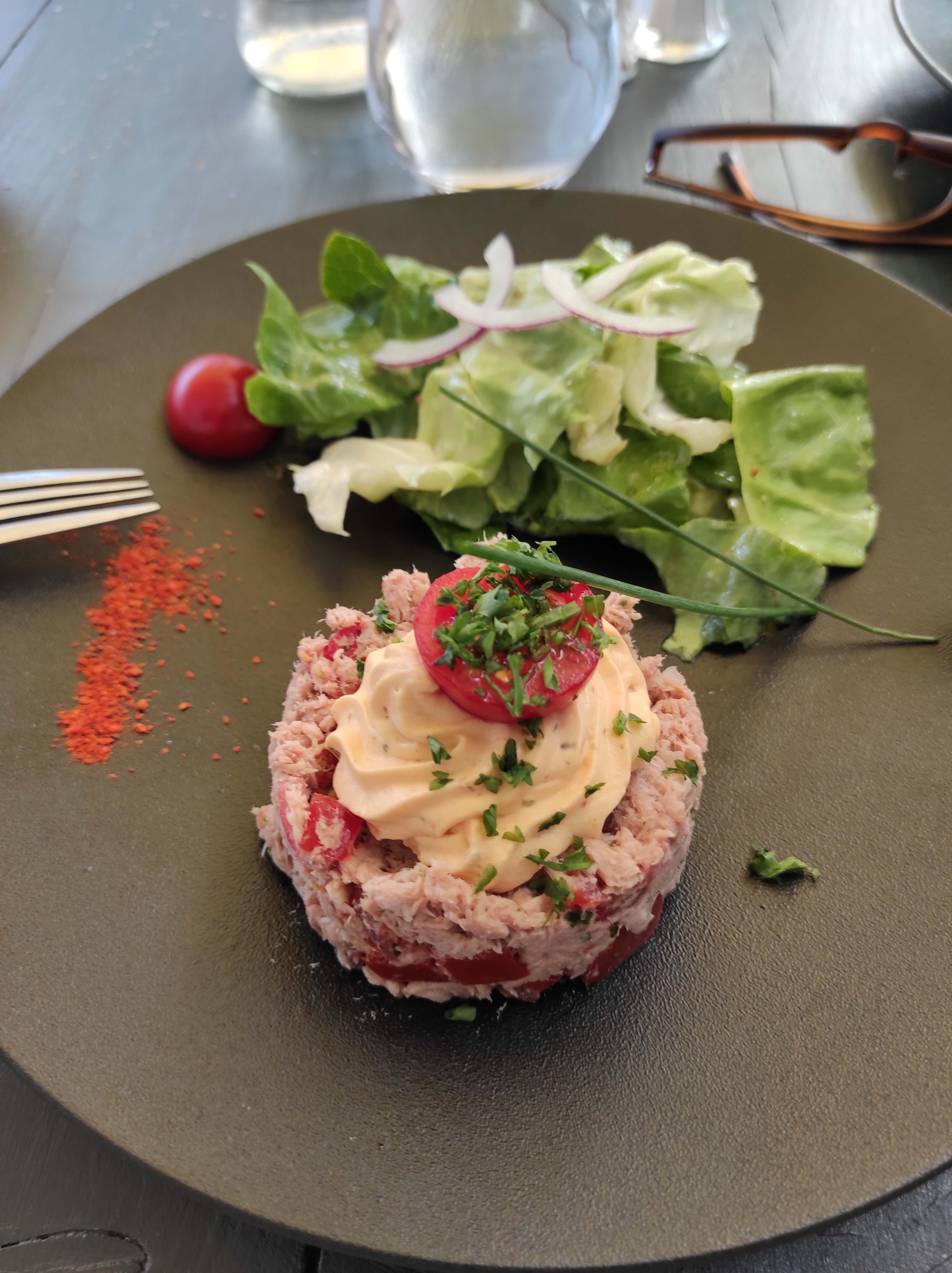 Par hasard nous sommes arrivées à 14h et avons apprécié ce restaurant où nous félicitation le Chef et son équipe ! Je recommande totalement, c’était bon et frais ! Dommage de laisser le sel et poivre au moment du dessert, mais ce n’est qu’un détail ! À bientôt quand nous habiterons dans cette belle région :-)