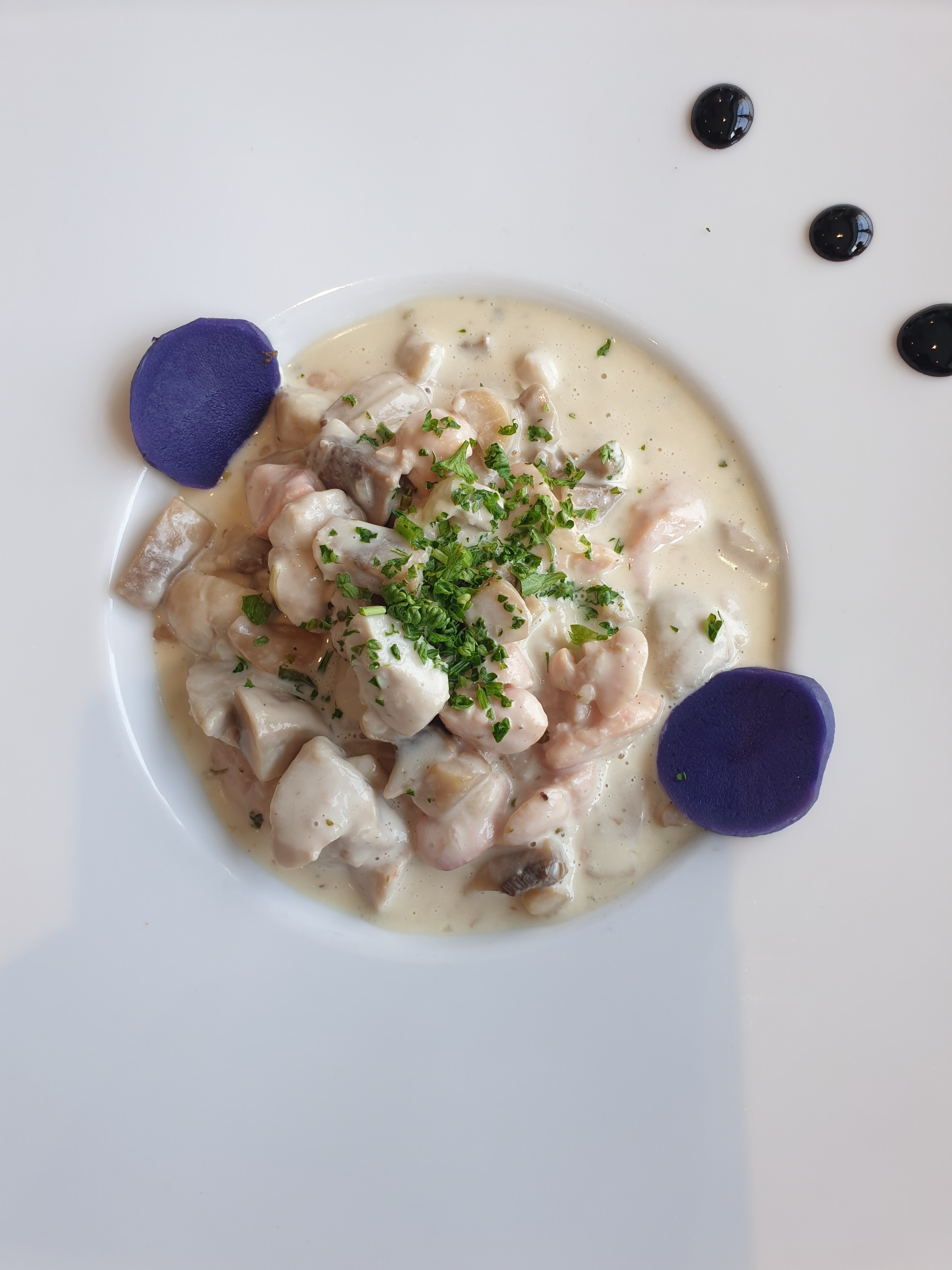 Excellente adresse Une belle découverte culinaire. Les enfants ont opté pour le bar & un rumsteck ( et frites maison) Et pour ma part de délicieuses st jacques aux truffes. Stationnement facile Sanitaires propres Terrasse Personnel accueillant & souriant Jolie attention pour le 1er mai 🍀merci pour le muguet