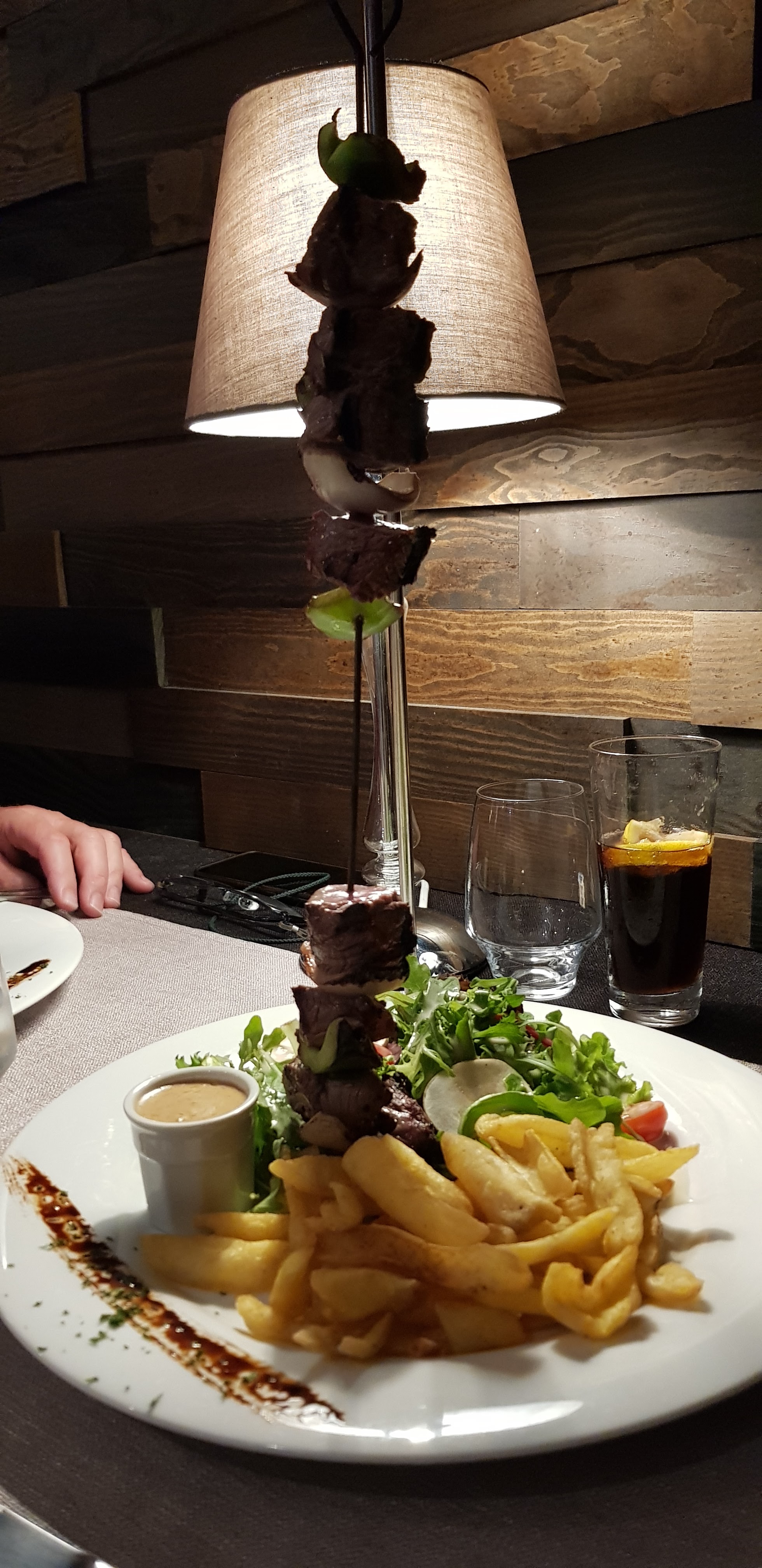Adresse vivement conseillée ! On vous recommande la (grosse) brochette de bœuf dont vous vous souviendrez autant de la viande que de la présentation très originale 😀 Pour finir le repas, laissez-vous tenter par l'énorme profiterole, vous ne serez pas déçus ! (Je parle en connaisseuse). Bref, joli restaurant, bonne cuisine joliment présentée, le tout géré par un patron très sympathique qui mérite de travailler 😃😃 Hâte d'y retourner !!
