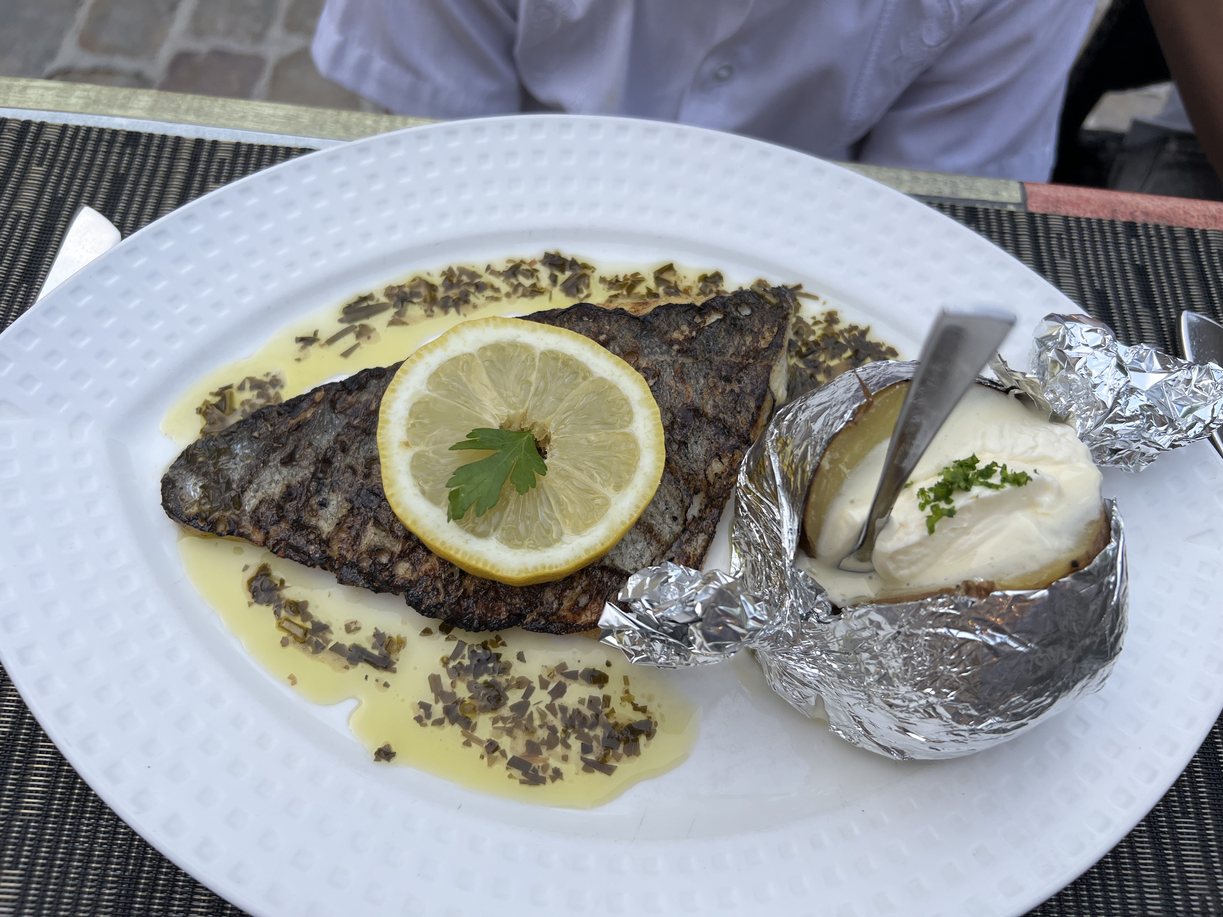 Tout la nourriture et le vin étaient super SAUF !!! 1. Ma table était exactement à côté de la cuisine, à droite, et les toilettes pour hommes et femmes à gauche. Je veux dire juste à côté des deux portes. Même un seul serait un problème pour la plupart des gens. MAIS les deux !!! Pas bon!?! 2. Prix de l'eau minérale trop élevés. 3. Une grande table de personnes visiblement bien connues du personnel et de la direction est venue dîner assez tard. Tout le restaurant semblait concentré sur cette table « importante ». Le personnel discutait à cette table pendant de longues périodes. J’avais l’impression qu’en tant que touriste, j’étais vraiment une seconde classe. Je me suis senti totalement ignoré et le service est devenu très médiocre.