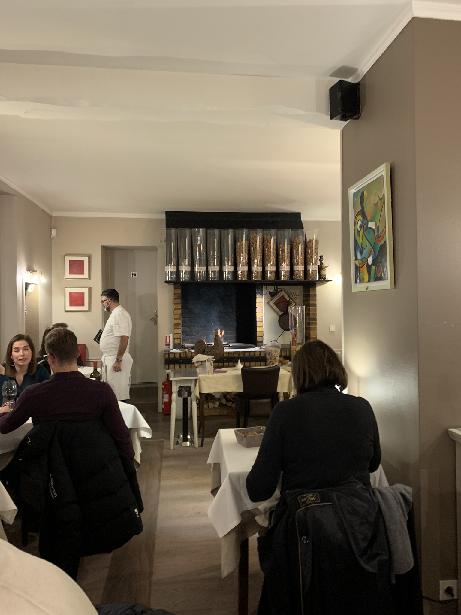 Restaurant où l'ambiance est chaleureuse la délicieuse odeur du feu de bois y participe, le personnel est très aimable et attentionné ainsi que le chef. La cuisine est très bonne. Pour ma part j'aurais aimé avoir un peu plus de quantité pour le filet de poisson et disposer d'un peu plus de crème pour la pomme de terre en papillote