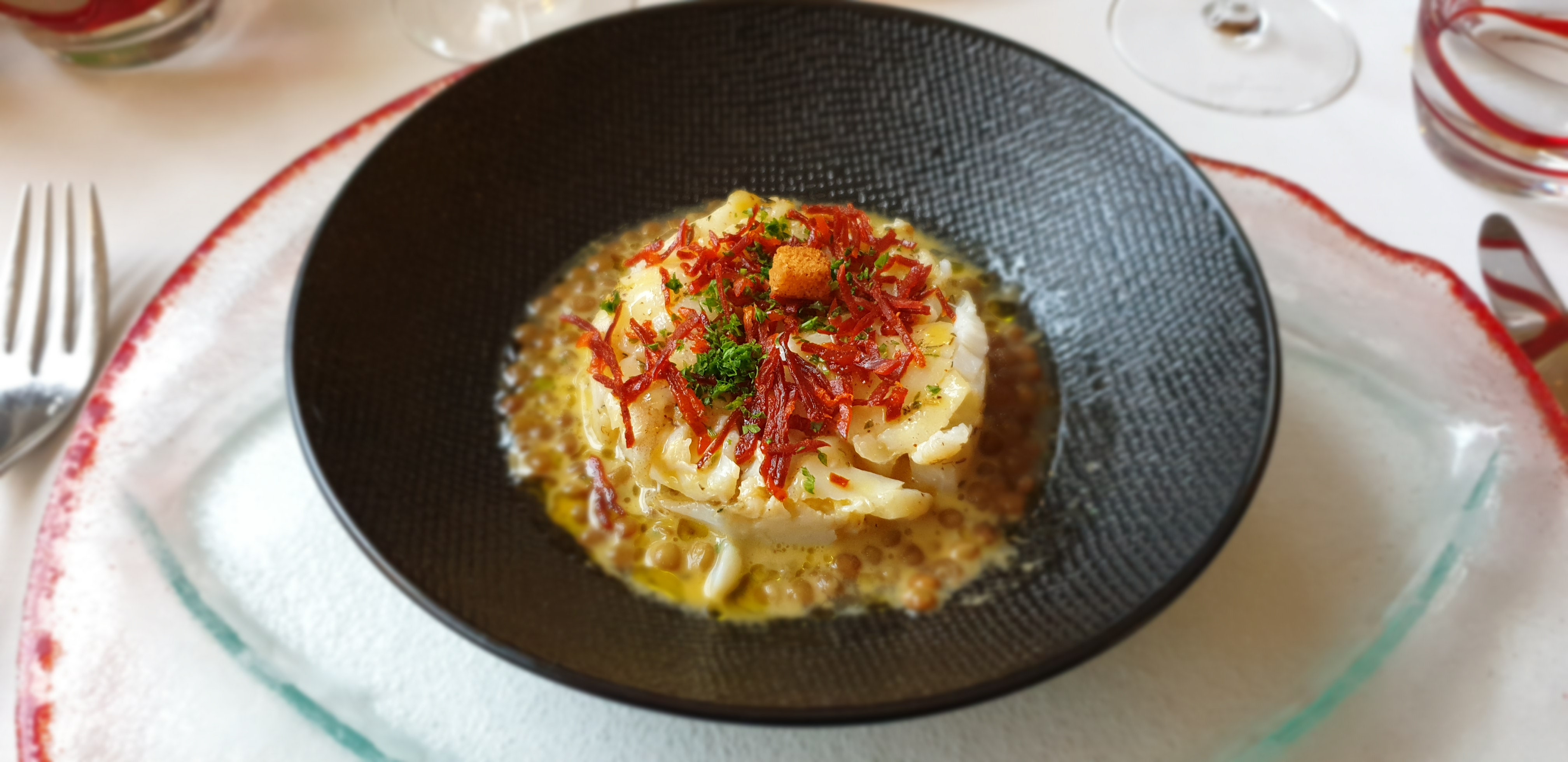 Cadre sympa, accueil charmant entre autres par le chef et cuisine de qualité. St Jacques en carpaccio aux lentilles et agrumes top