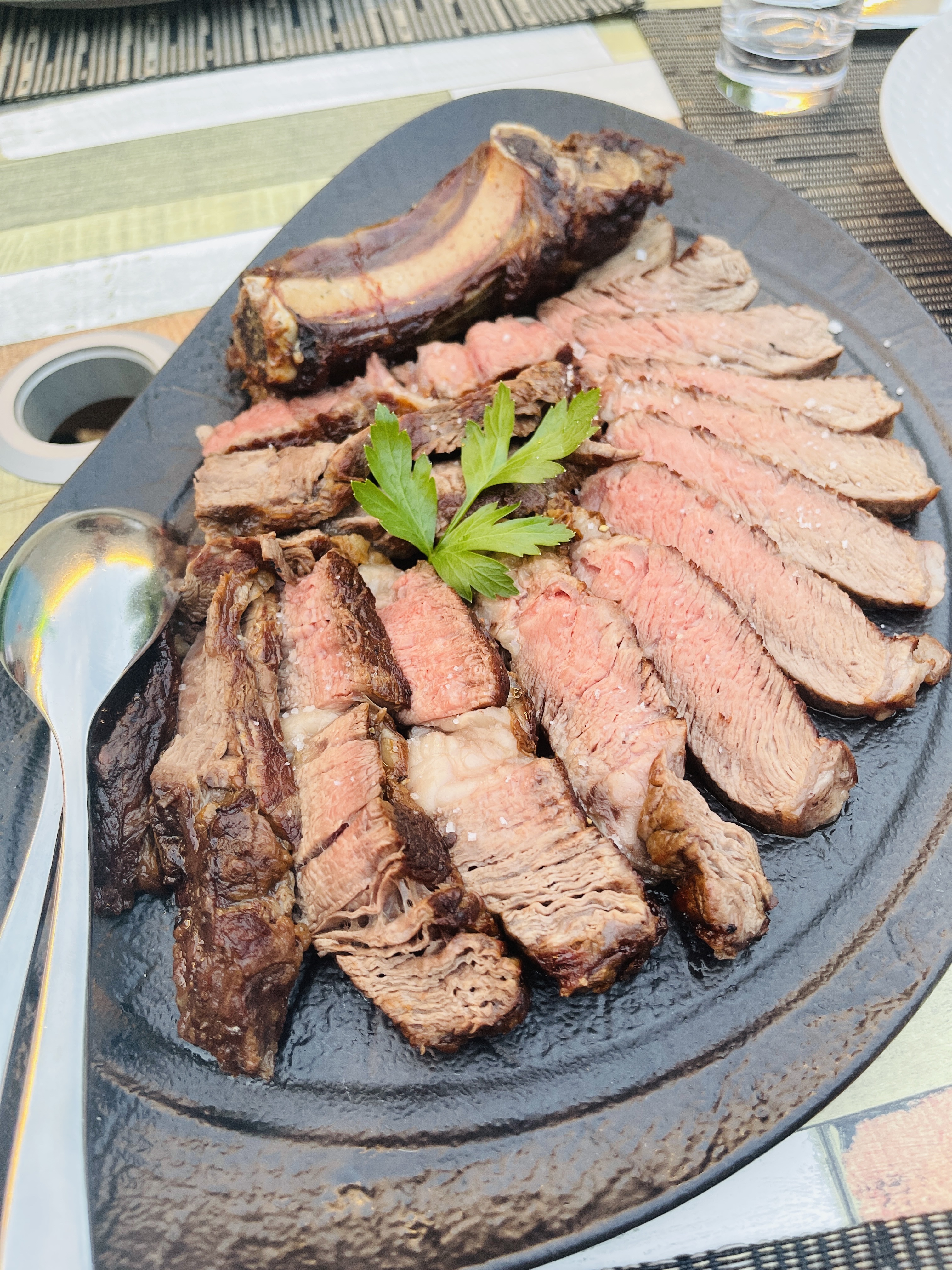 Excellent restaurant. Probablement l'un des meilleurs dans ce domaine. Ils ont proposé un bon menu et des plats à la carte. Tout ce que j'ai mangé était délicieux. La carte des vins est un livre de la taille d’une encyclopédie. Ils peuvent préparer des plats au feu de bois, ce qui est très spécial. Ça vaut le détour!