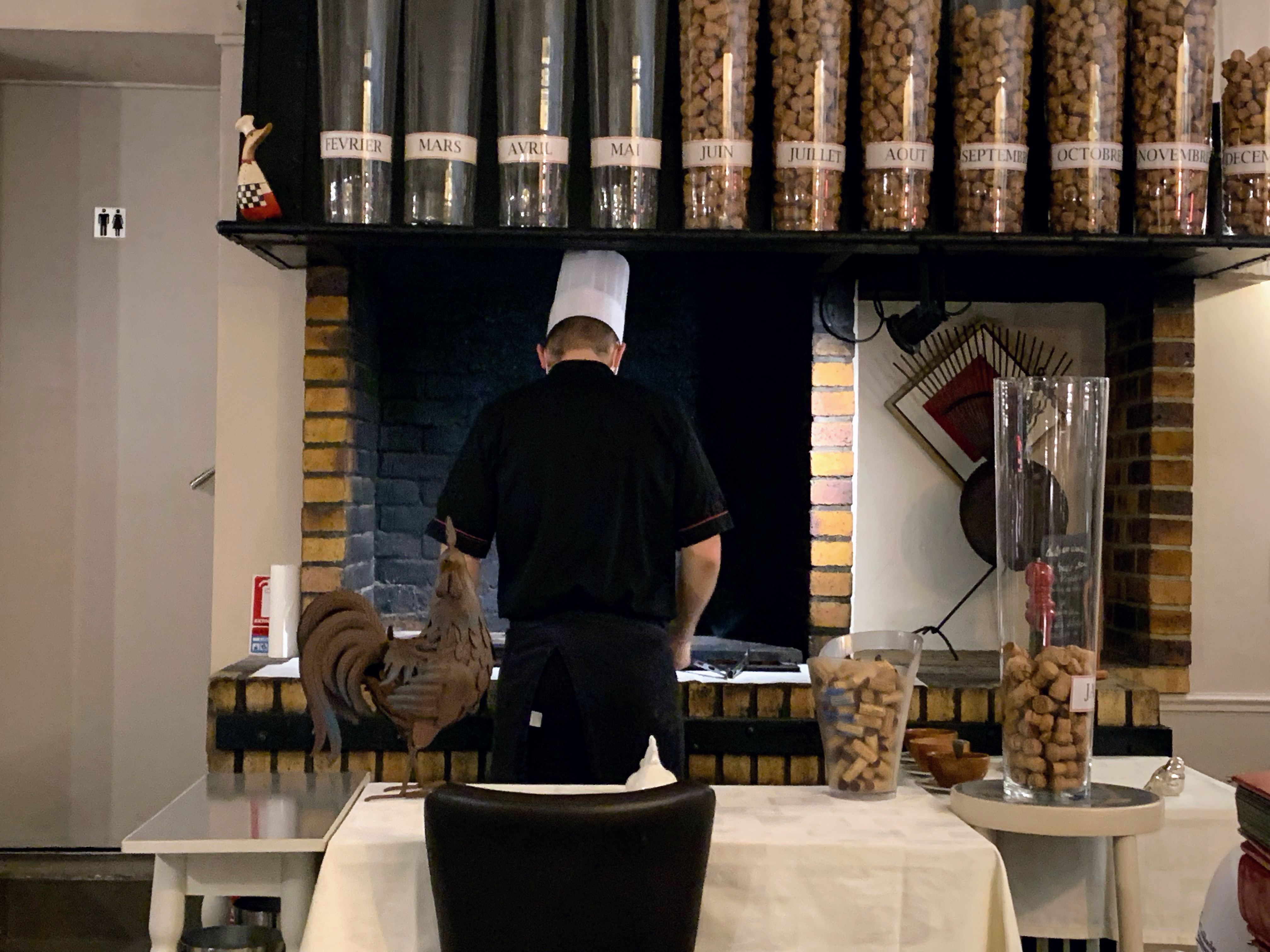 Bistrot convivial et convivial aux murs rouges, avec la chaleur du grill au bois et le sourire du chef et propriétaire, Christophe Bernard, pour vous accueillir. Les plats grillés sont servis de manière simple et avec simplicité avec une seule pomme de terre au four crémeuse. J'ai eu le carré d'agneau mi-saignant et c'était un vrai mi-saignant. Les entrées étaient un peu plus complexes que les plats principaux. Mon assiette de pétoncles et de lentilles était d'un goût superbe et savoureuse. Le lieu est, et est depuis des années, un point de rencontre du commerce du Champagne. Vous aurez peut-être la chance de dîner à côté d'un directeur de maison, d'un journaliste viticole bouillonnant ou d'un producteur. Les salutations s'effectuent rapidement entre les différentes parties et tout le monde semble se connaître.