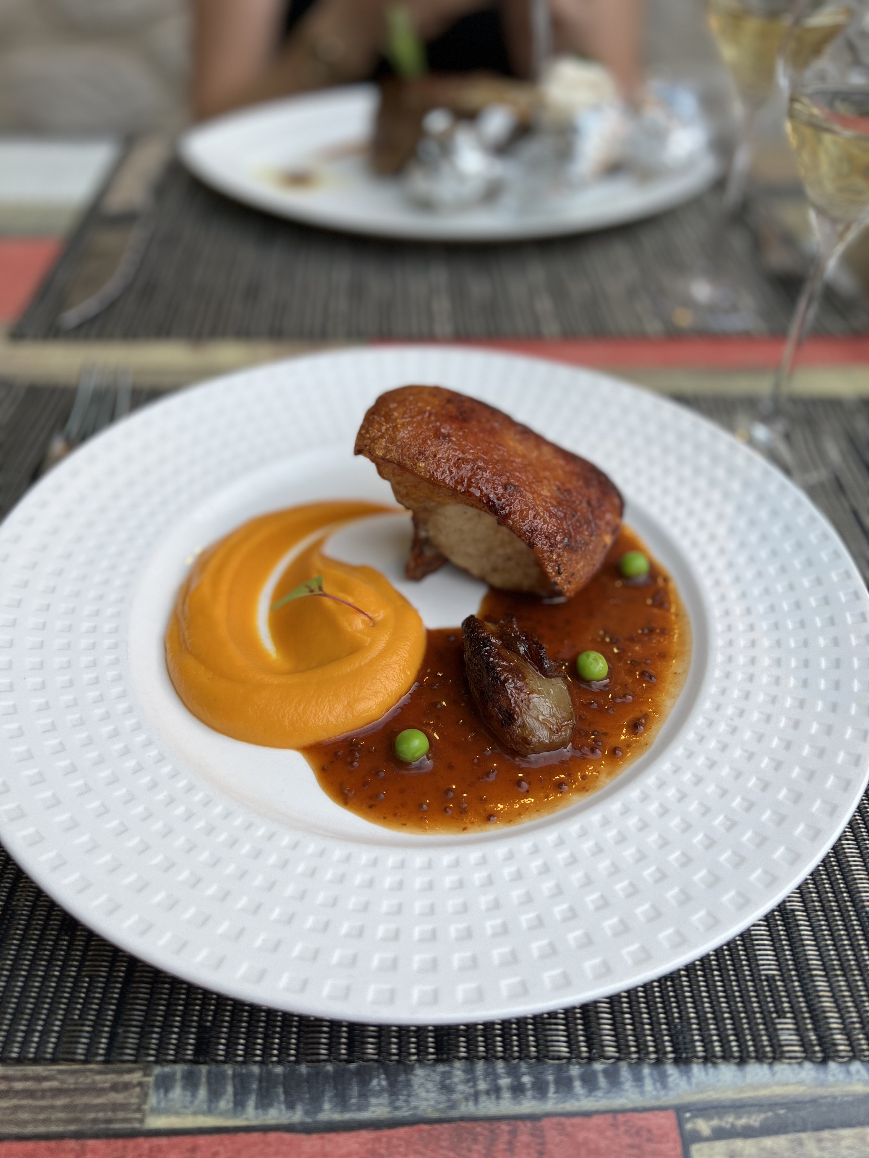 Excellent restaurant avec une belle terrasse ombragée, une belle carte et un bon choix de vins et champagnes. Le chef que l'on peut voir en salle à la fin du service est un vrai plus.