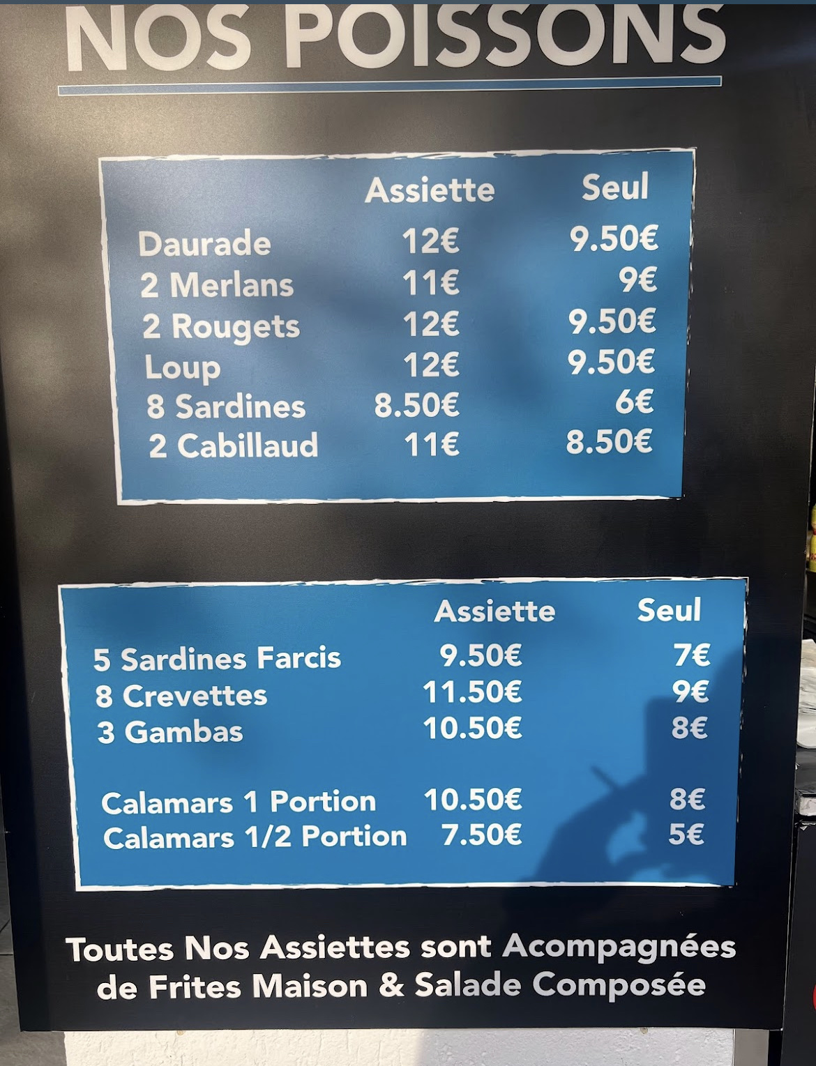 Mauvaise expérience pour ma part tacos immangeable pas de goût le poulet pas cuit sur certains endroits,fade et bcp trop de sauce impossible de le manger, sandwich idem trop sec. Pour le reste poissons etc je ne me prononce pas car je n'ai pas goûté voilà