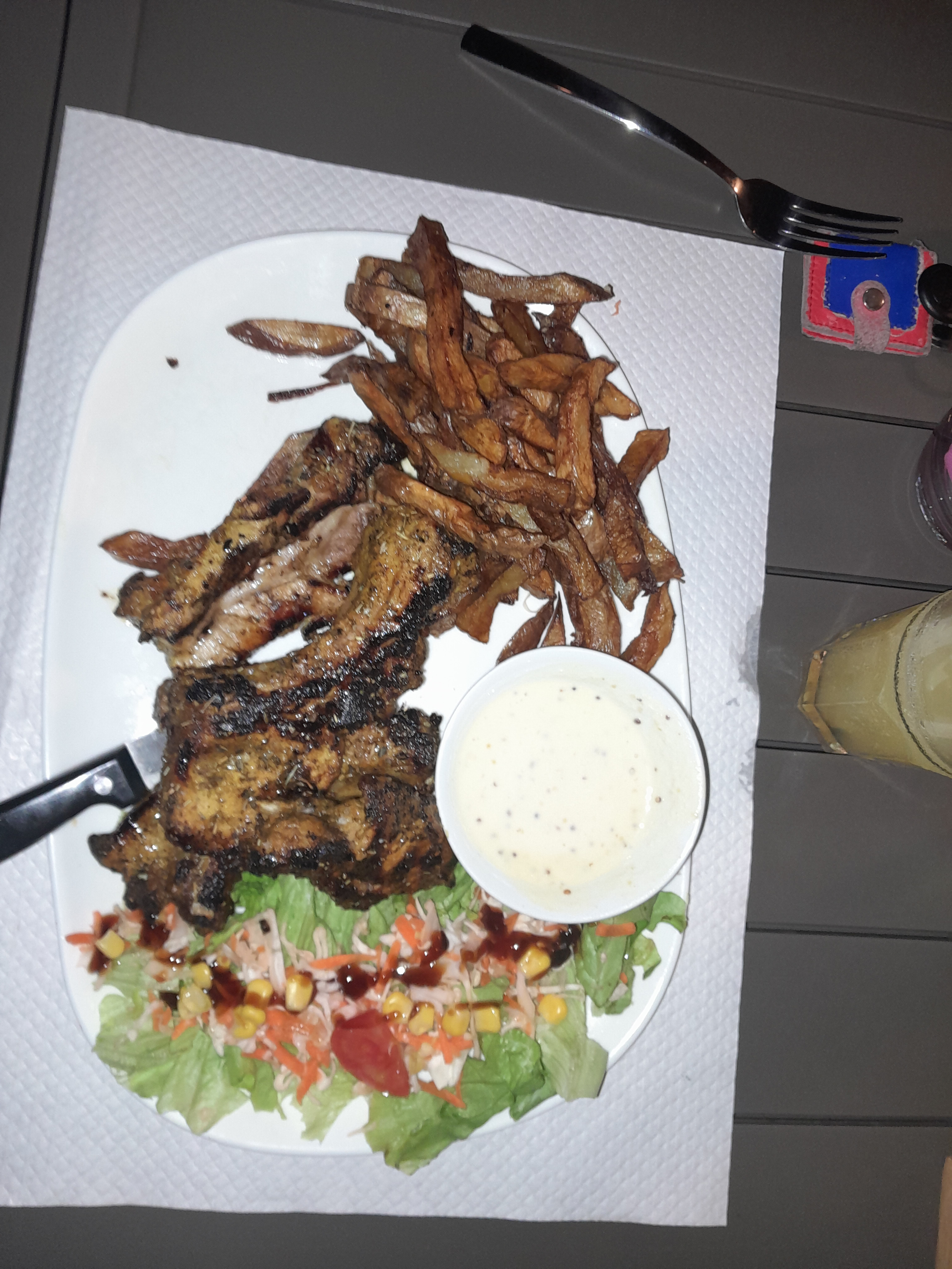 Un excellent restaurant que je recommande vivement. J'y etais avec ma copine pour une soirée à deux, la viande est de très bonne qualité, la cuisson était parfaite autant pour l'entrecôte que pour les ribs de porc. Les sauces maisons sont excellentes Et merci aux personnels pour leur bonne humeur