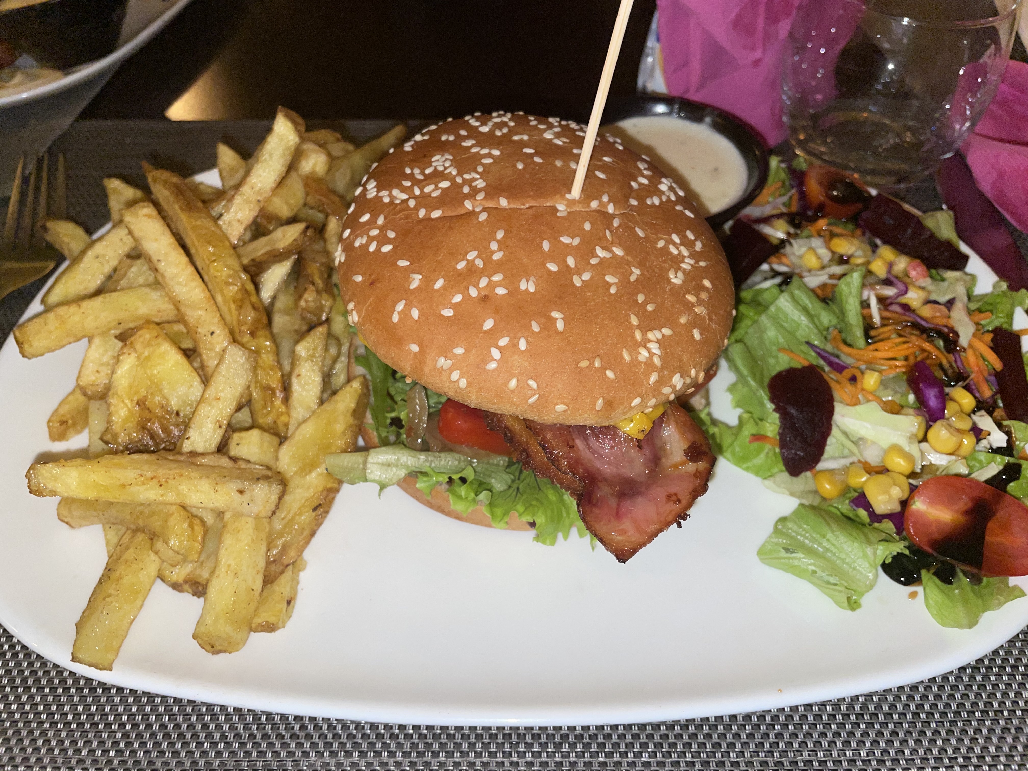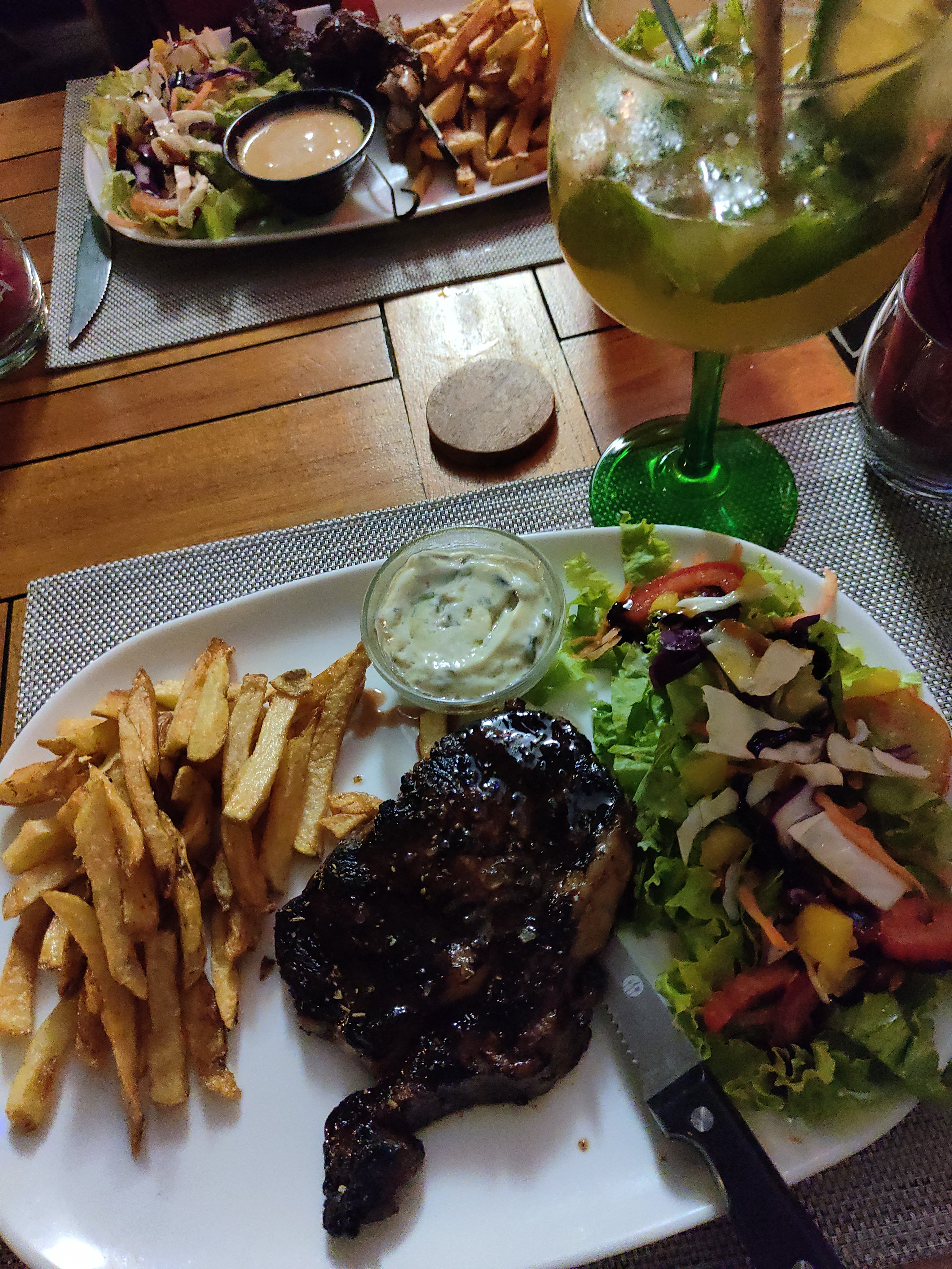 Je ne recommande pas dutout.a part la viande le reste était immangeable les frites et les pommes de terre pas cuites ( la base pour un restaurant).le cocktail pareil impossible de le boire.le personnel pas accueillant et n'accepte pas les critiques constructives.Pour couronner le tout le prix vraiment très cher.