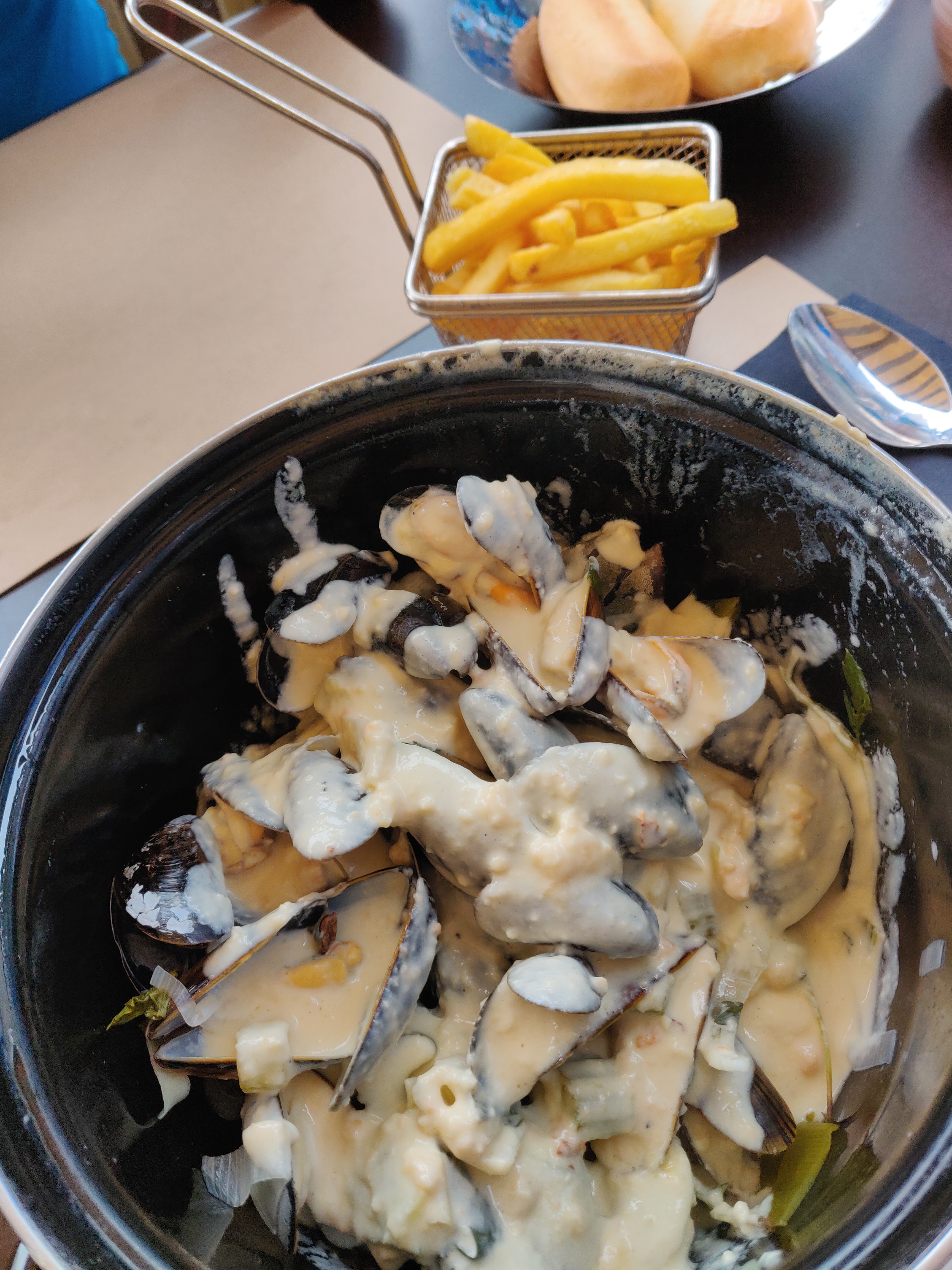 Les moules frites incontournables un délice, l'endroit et plutôt pas mal, ça terrasse extérieur au top l'été, gérant professionnel