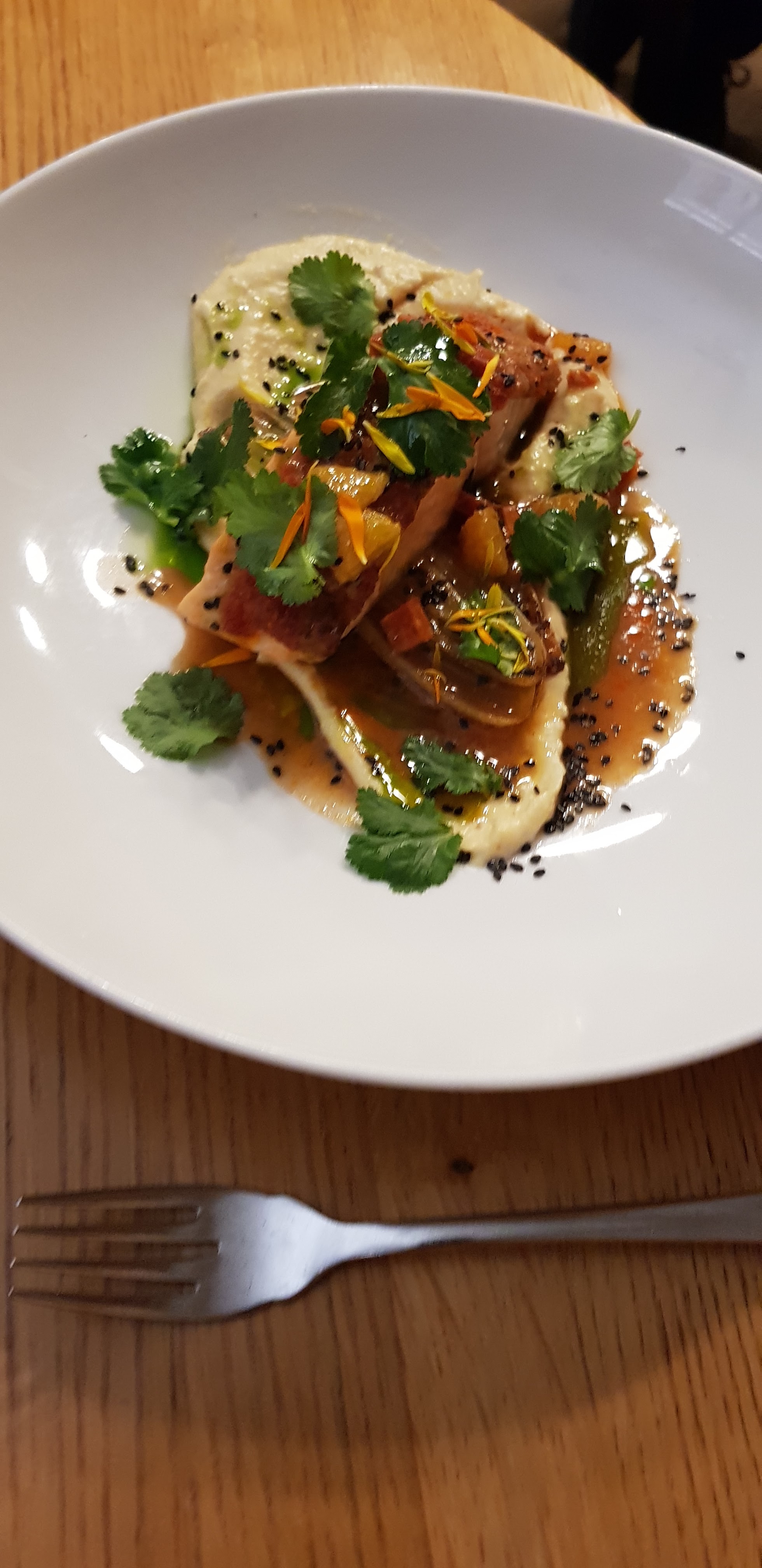 Lendroit est sympathique, le personnel aux petits soins, les plats joliment présentés. La cuisson du poisson était parfaite mais une partie de l'accompagnement (gnocchi à la betterave) manquait cruellement de finesse ( forme grossière, pâteux) et au final a pénalisé le plat. Entrée et dessert plutôt réussis. Nous sommes déjà venus dans ce restaurant il y a quelques années et j'avoue, cette fois, avoir été un peu déçue culinairement parlant.