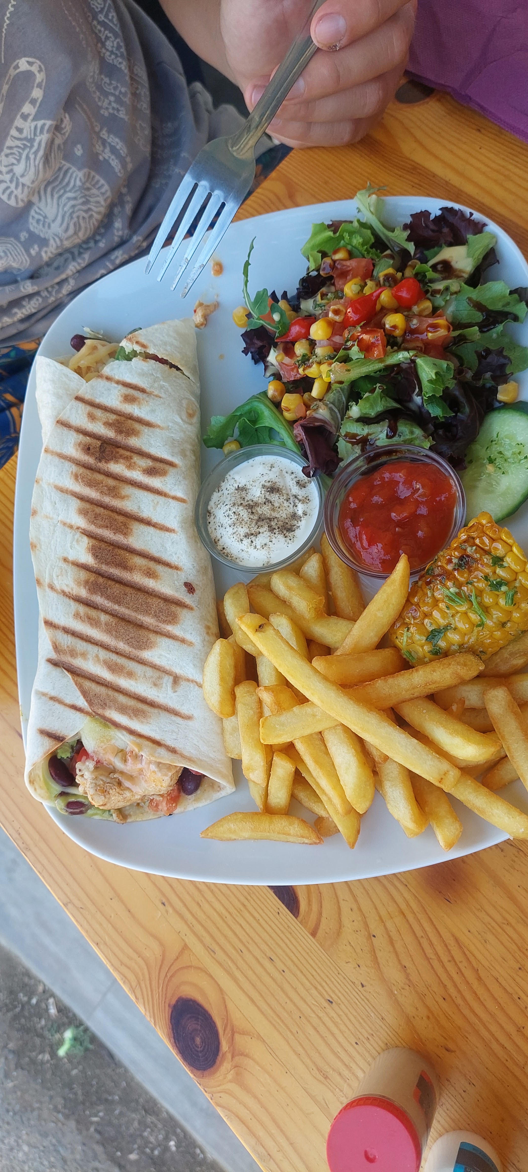 Nous avons passé un très bon moment aujourd’hui ! Service chaleureux, musique sympa. Nous avons été très contents de nos plats (assiette italienne et mexicaine). Je recommande !