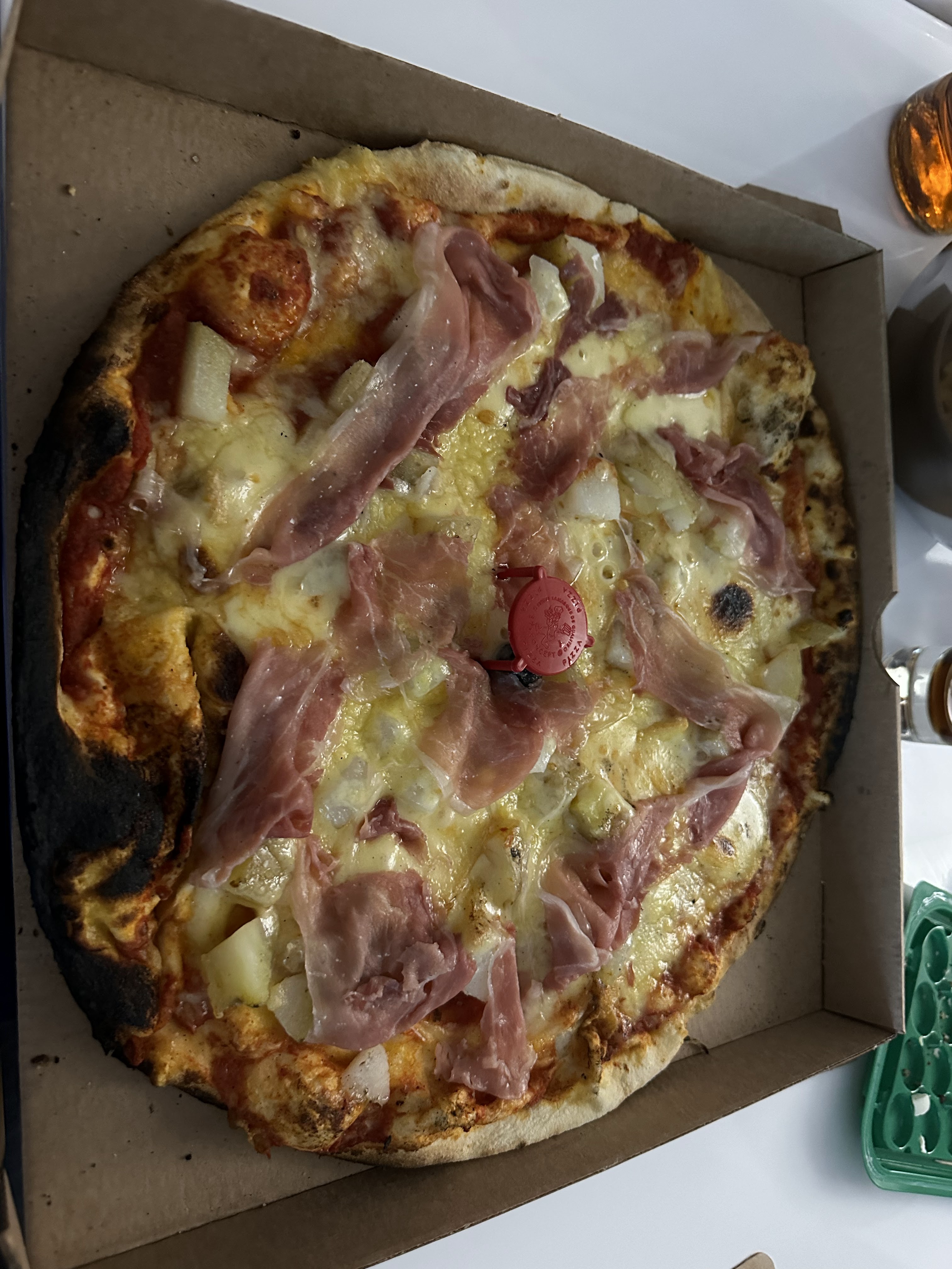 Catastrophe.. Pizza fuorigioco baignée dans la sauce vinaigre balsamique.. La sauce coulait carrément du carton.. Immangeable ! Et pizza interparma pas fraîche. Je déconseille.. On a tout jeté.