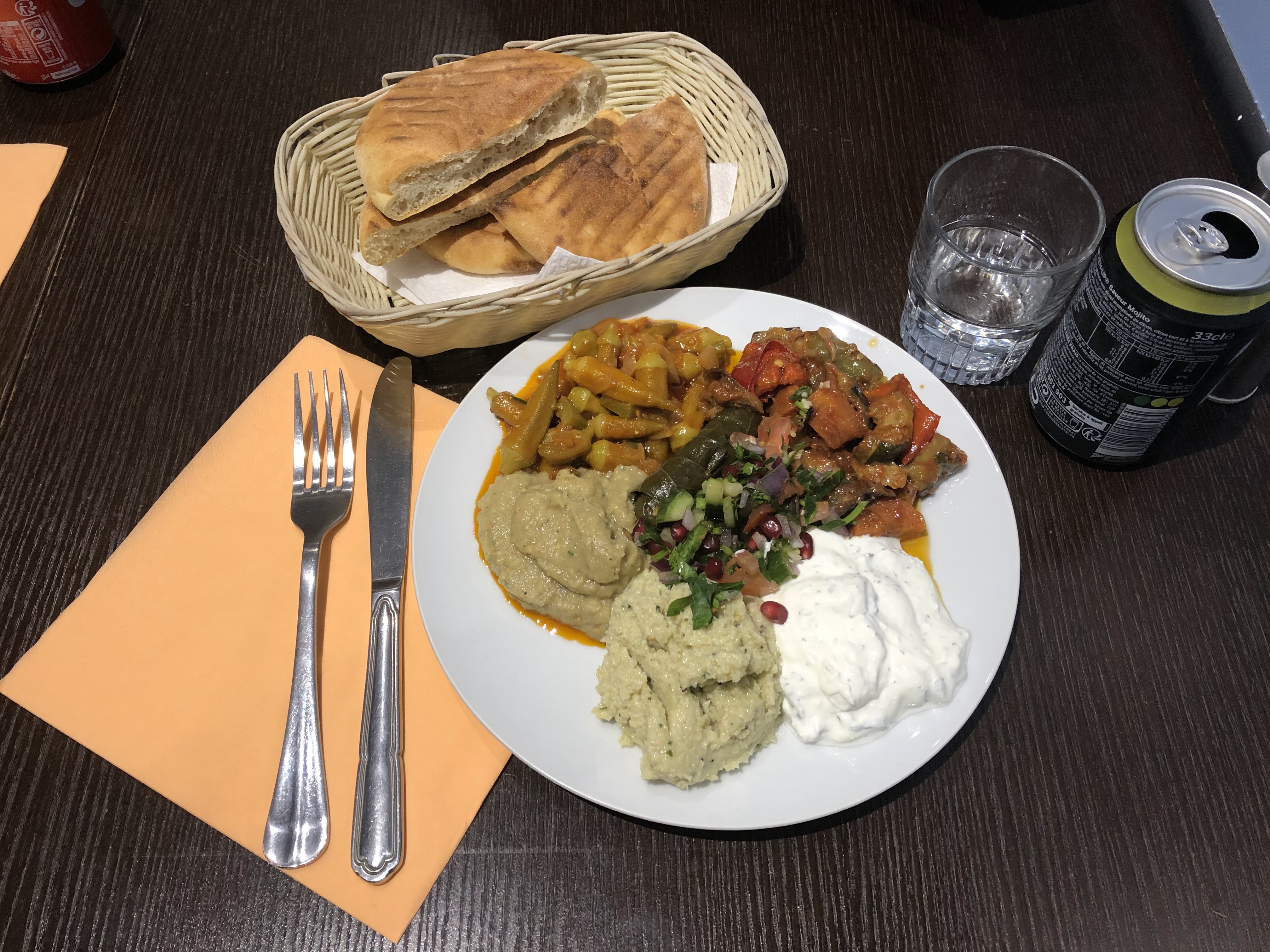 Parfait équilibre qualité/prix. Pour 7 € vous pouvez choisir une assiette avec 7 petits plats. C'est toujours frais et savoureux. La plupart des plats sont végétariens, mais il existe également des plats à base de viande. Avec l'assiette à 7 € on vous proposera un thé qui est très bon aussi. Le propriétaire est toujours sympathique. L'endroit où vous souhaitez revenir.