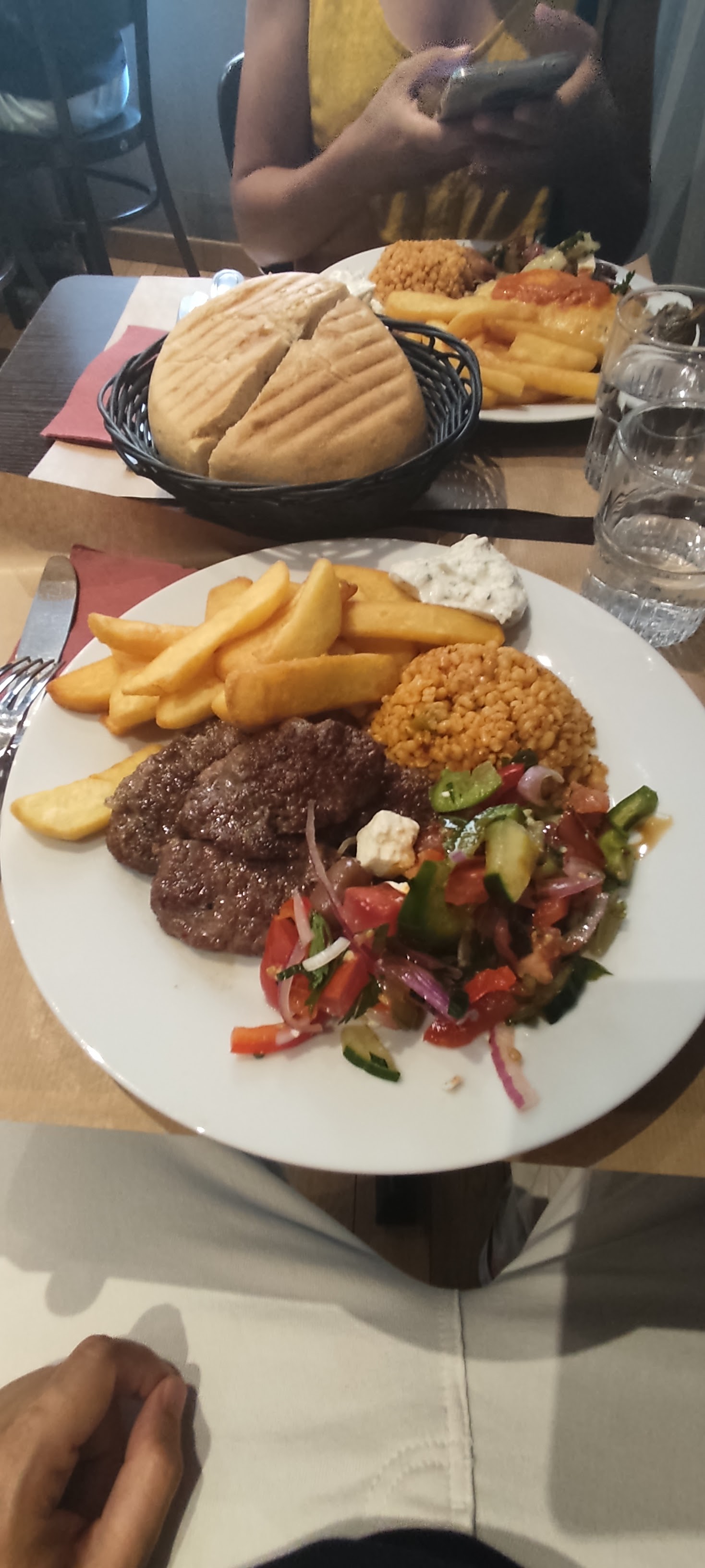 On mange bien et beaucoup pour pas cher, et de plus on vous sert bien et avec le sourire. Au début j'hésitais, je me disais encore un kebab, et ben non, c'est un vrai resto grec, et il y'a plus que ça.. Bref je recommande