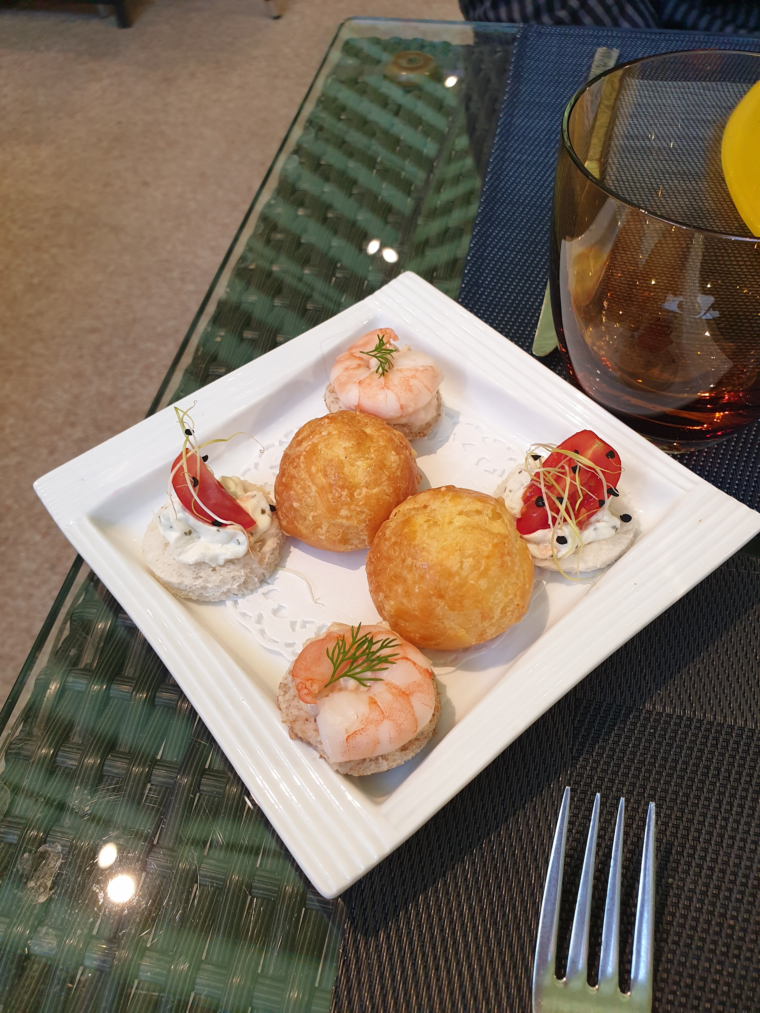 Autant la cuisine est un régal pour les yeux et pour les papilles autant la patronne joue les snobs, je sortais du boulot, donc vêtue normalement, elle m’a toisé de haut en bas, avant d’accepter de nous installer, on a provoqué une discussion, quand elle a su où on travaillait, elle nous a offert une bouteille de champagne mais le mal était fait.