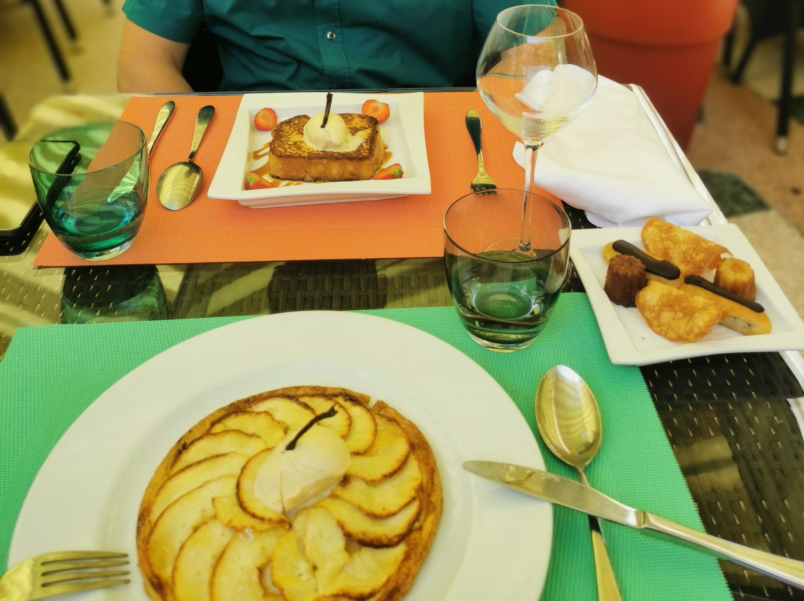 Une belle surprise ; fait un midi avec une formule raisonnable (27€ plat dessert accompagnés de mignardises à découvrir). Très bon et copieux. Juste la tarte aux pommes très quelconque mais copieuse. Terrasse agréable. À découvrir et refaire !