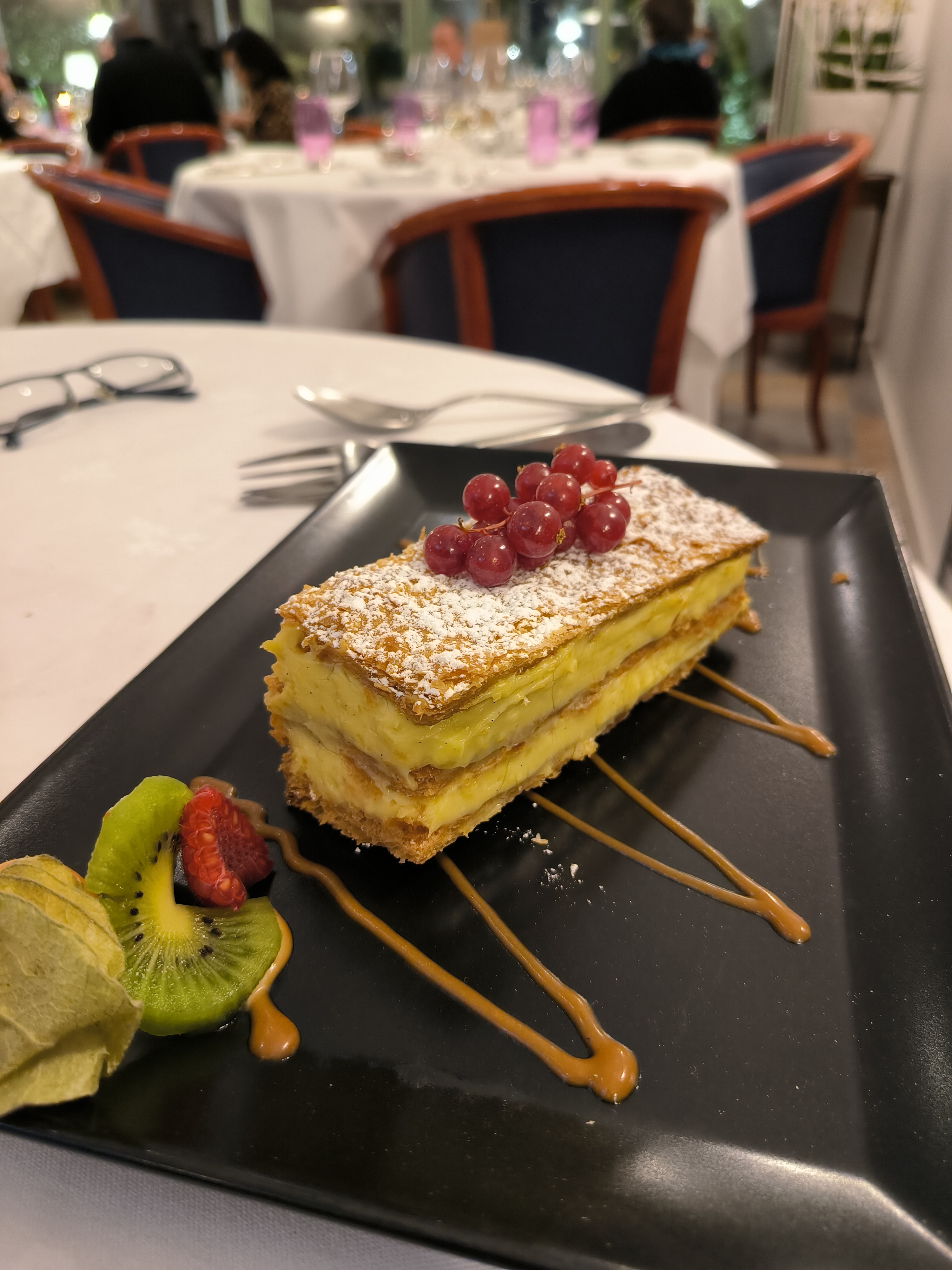 Superbe première expérience dans ce restaurant dont j’entends parler depuis mon enfance ! Repas sans faute en commençant par la poêlée de girolles, puis les noix de saint Jacques, pour finir par l’emblématique mille feuilles à tester absolument, c’est sans conteste le meilleur que j’ai mangé de ma vie. Merci pour ce délicieux moment !