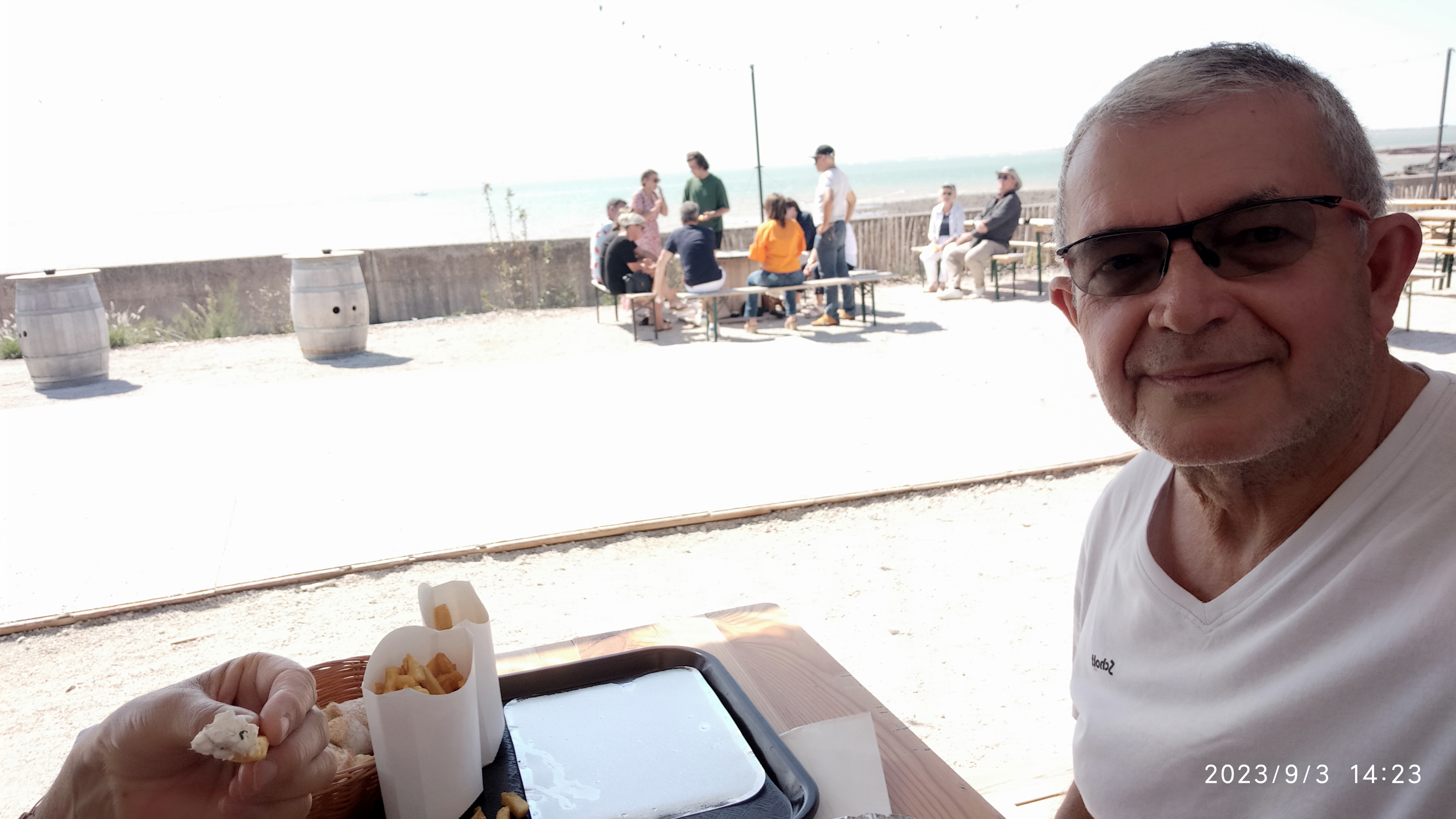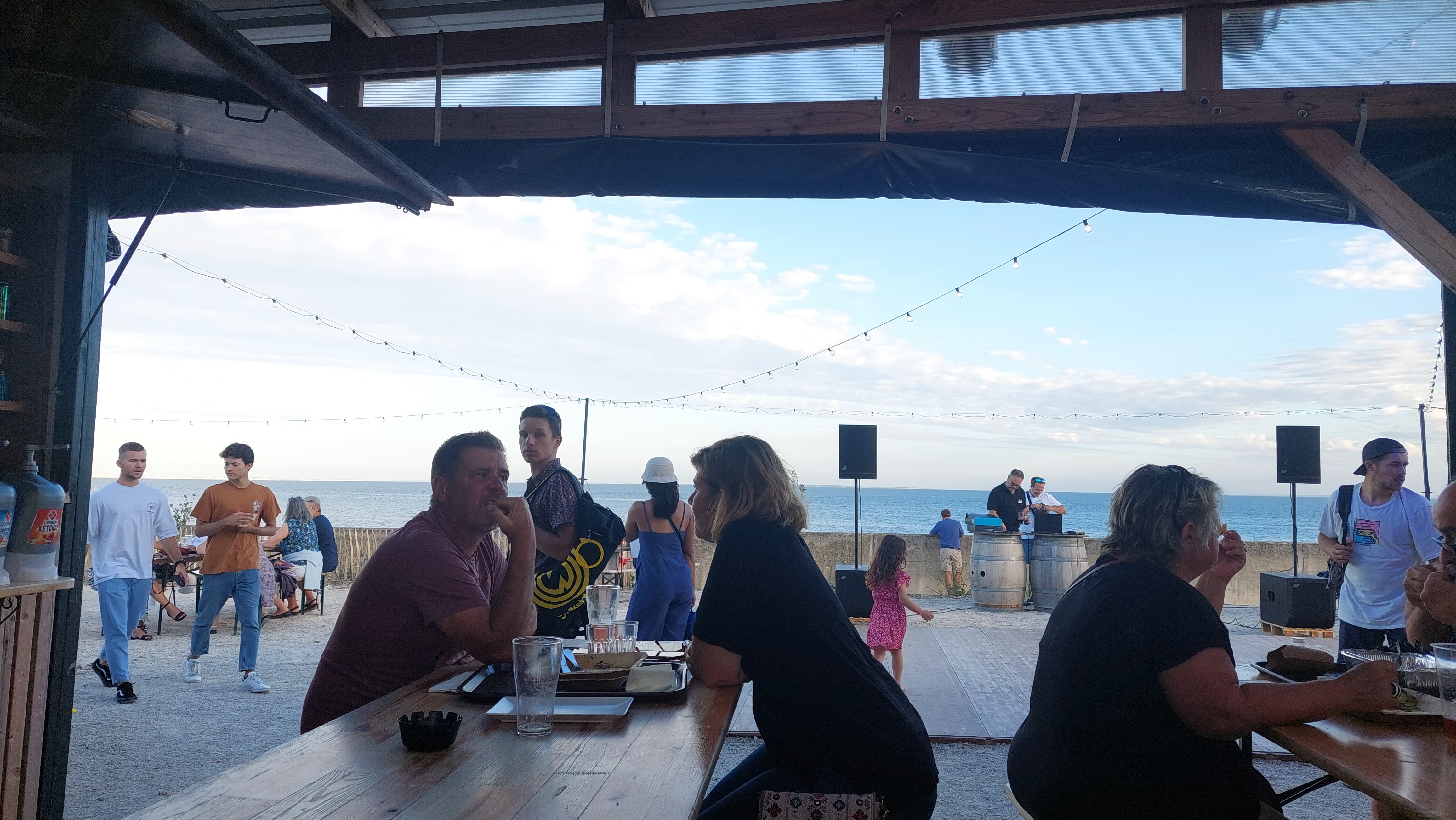 Lieu éphémère. Qui pour la première année est à la Rochelle. Un côté mer sardines grillées, moules frites etc.. Un côté terre avec Hamburger. Leur spécialité. En dessert glaces de chez Ernest Une vue exceptionnel sur l'océan on appèrcoie le phare du bout du monde , l'île d'Aix, fort Boyard. Ne vous attendez pas à un service grand luxe on commande au comptoir et on va chercher notre plateau au comptoir quand notre commande est prête. cela rajoute à la simplicité du lieu. Tout est servi dans des contenants recyclables En résumé un restaurant tout simple avec une cuisine simple . Le prix très correct. Musique à notre goût J'y étais pour mon anniversaire, mon épouse à demander de mettre une chanson de bon anniversaire. (Version rythmée) le personnel est venu en dansant ce joindre à la danse. Si vous y allez pour déjeuner vous avez un chemin qui emmène à quelques centaines de mètres à la plage de chef de baie. Le soir il y a des concerts. Mince je regrette toutes ces éloges je n'aurais plus de place quand je retournerai 😉😉. Attention pas de réservation