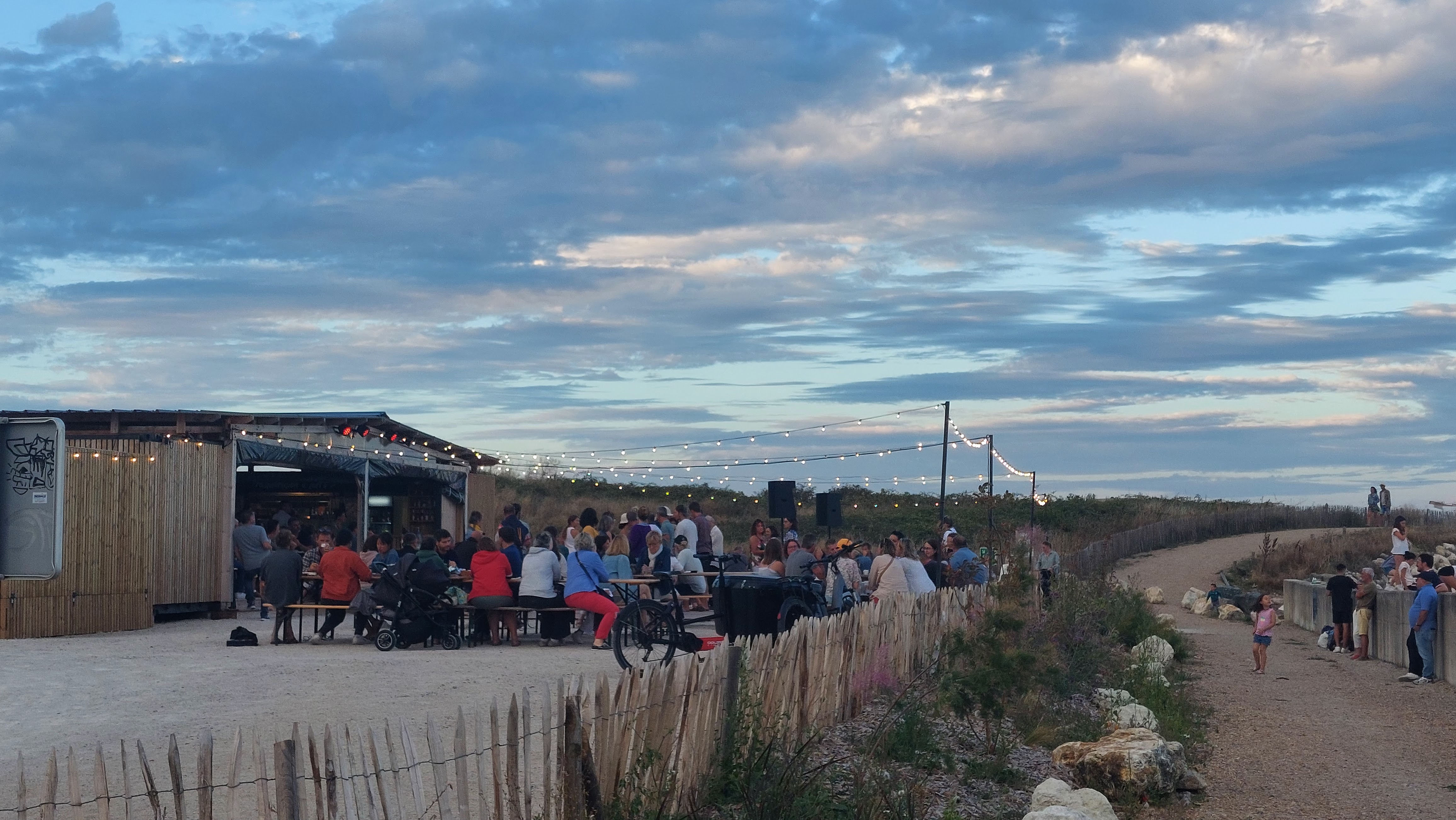Endroit atypique qui offre une petite guinguette en bord de mer, à faire le soir avec le couché de soleil !!! Côté mer avec moules, sardines... Et côté terre avec des burgers pour satisfaire tout le monde ! Animation avec un DJ set et une belle piste de dance.