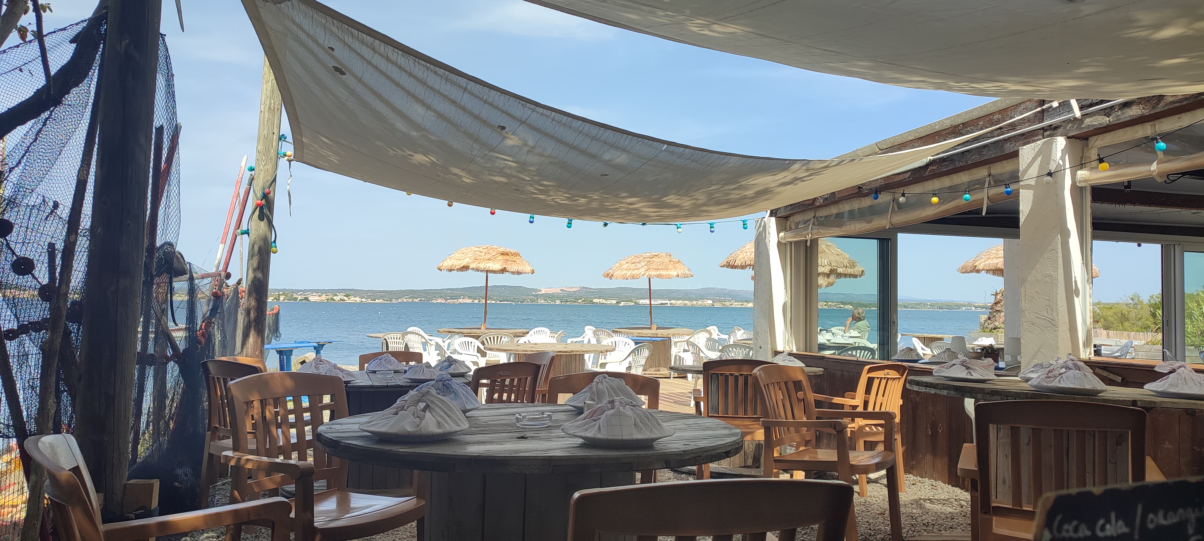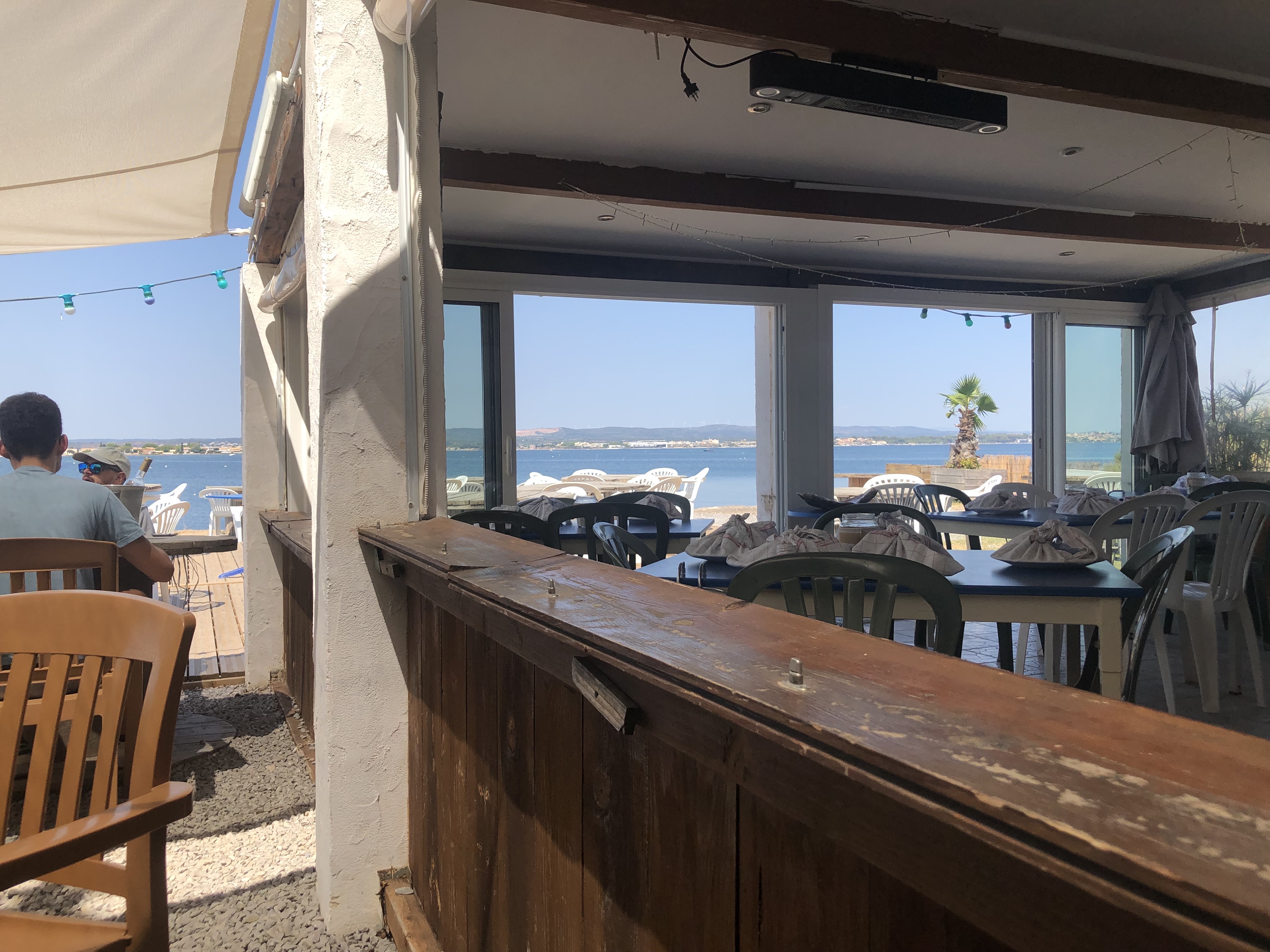Endroit très sympa au bord de l étang de Thau La serveuse est très gentille et efficace Merci à la chef cuisto pour ses plats délicieux .