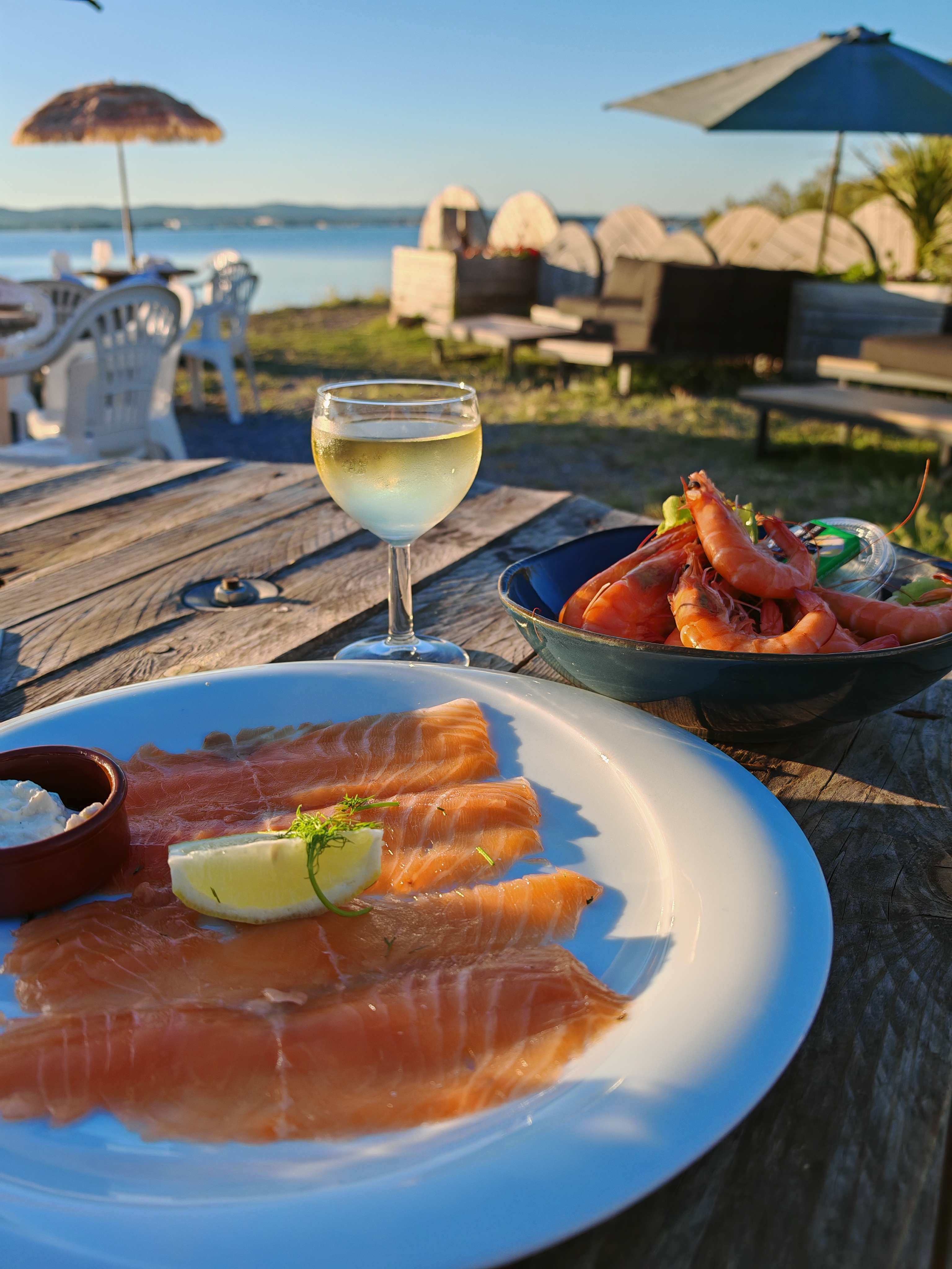 Trop super Crevettes huîtres lotte légumes vin bière tout était un régal... et ambiance très sympa Par contre même s il y a une vue magnifique peut-être un peu cher ...un peu