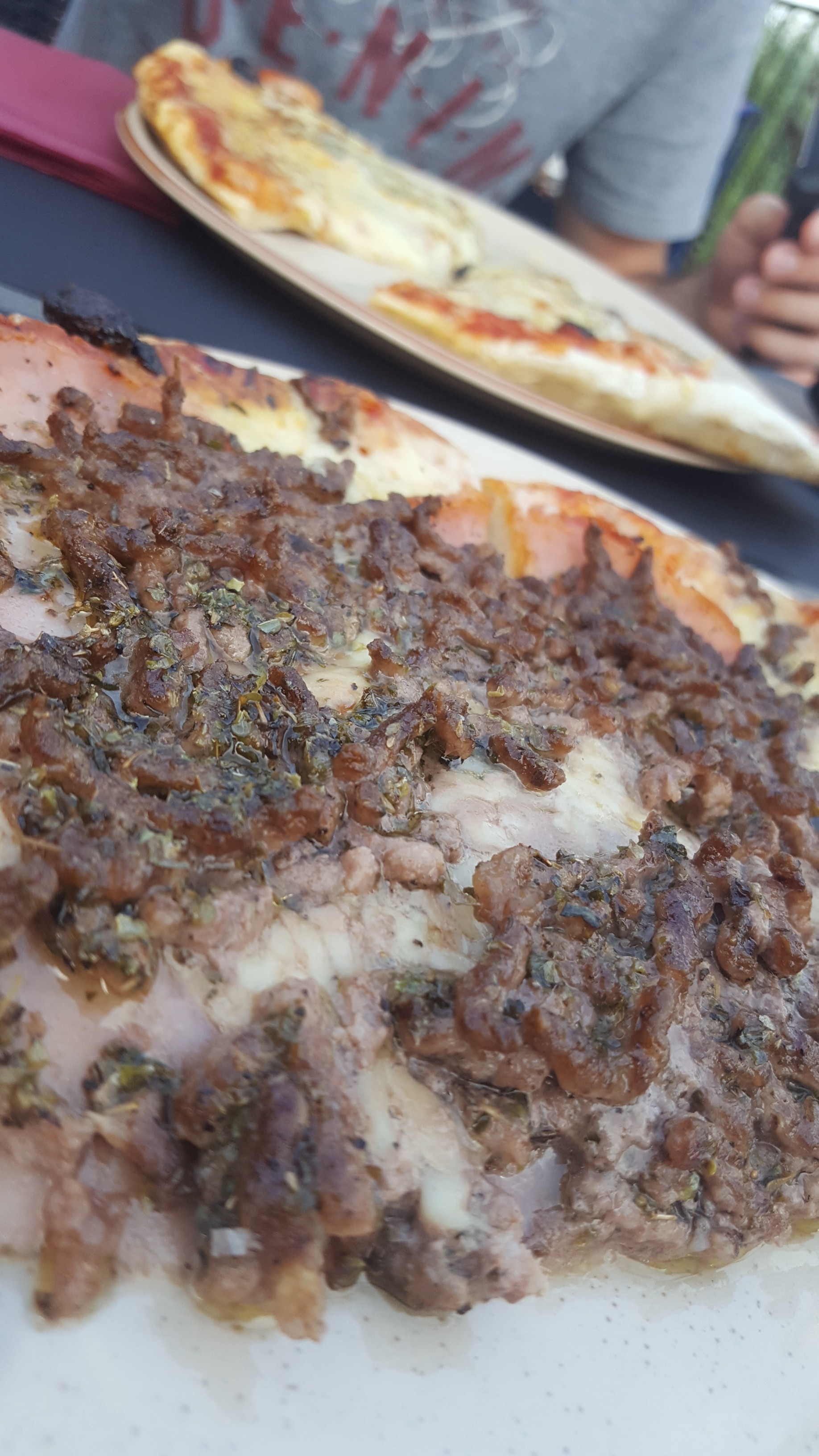Cadre très agréable, les grandes pizza portent bien leurs noms. Attention tout de même des chats se baladent sur la terrasse.