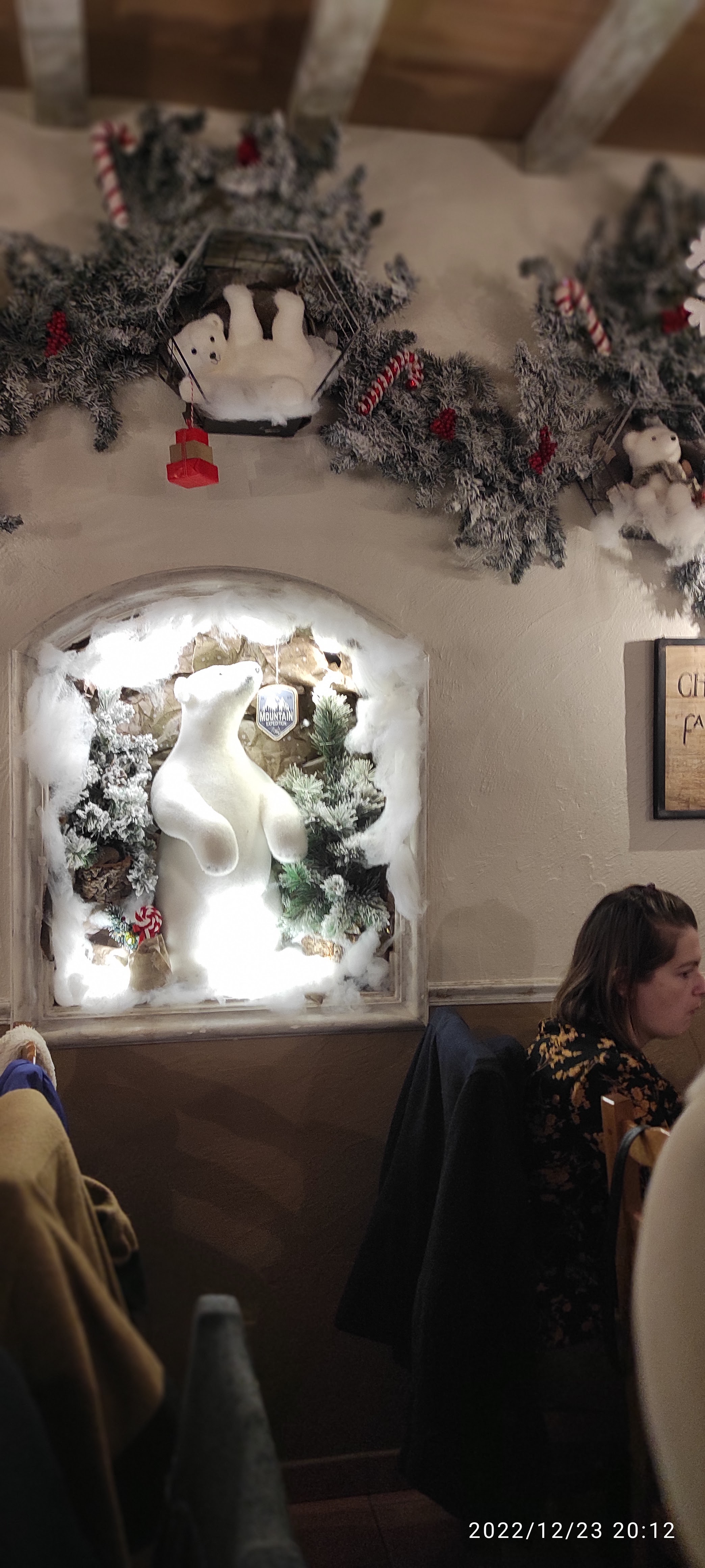 Quelle surprise au 30 janvier de voir les décos de Noël ! On en a eu plein les yeux extérieur et intérieur. Magnifique ! Un personnel très souriant et sympathique, pas d’attente et repas (pizza et dessert) excellent et très belle présentation.
