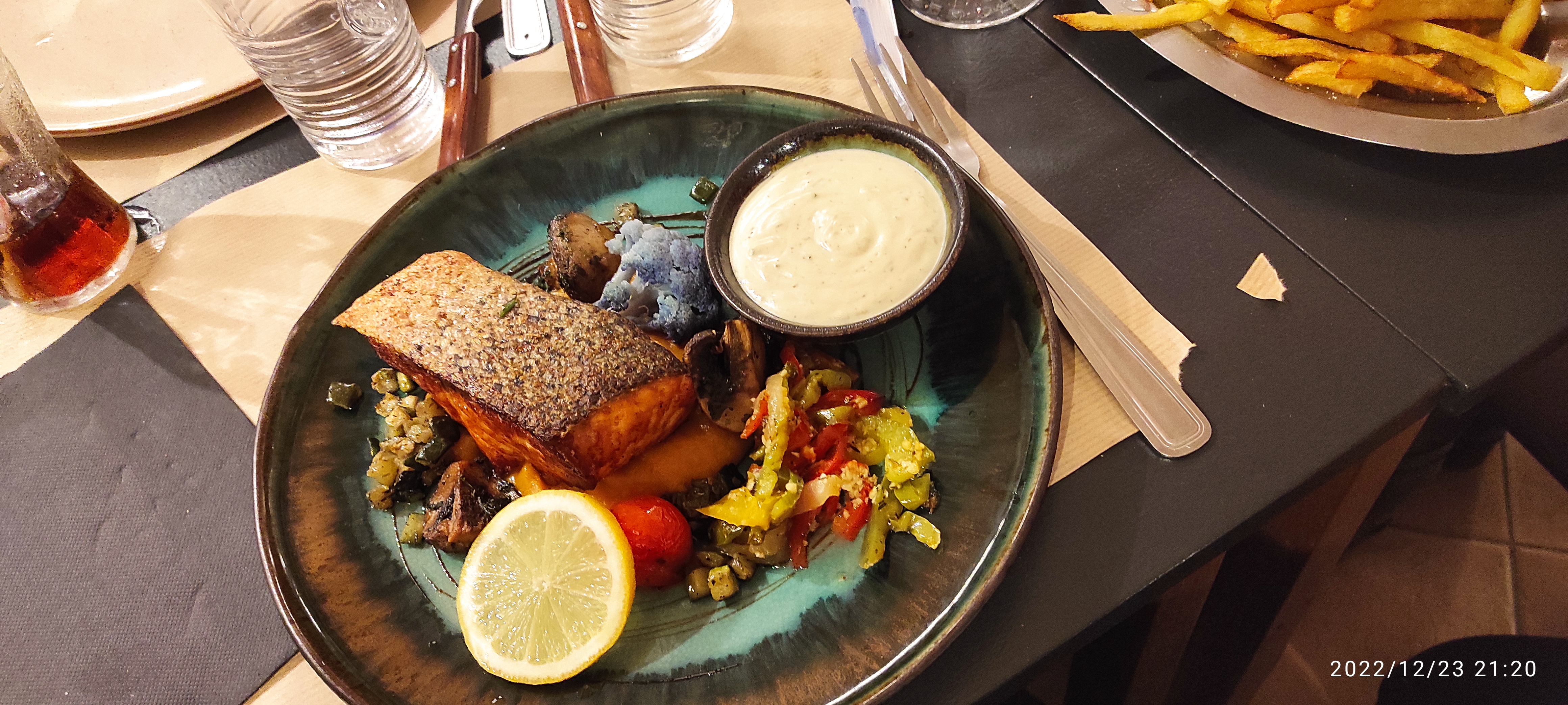 Nous étions 4 4 plats différents et nous nous sommes tous régalés... Très bonne cuisine pour tous les goûts Bonne ambiance Je recommande fortement... N'hésitez pas foncés !!!