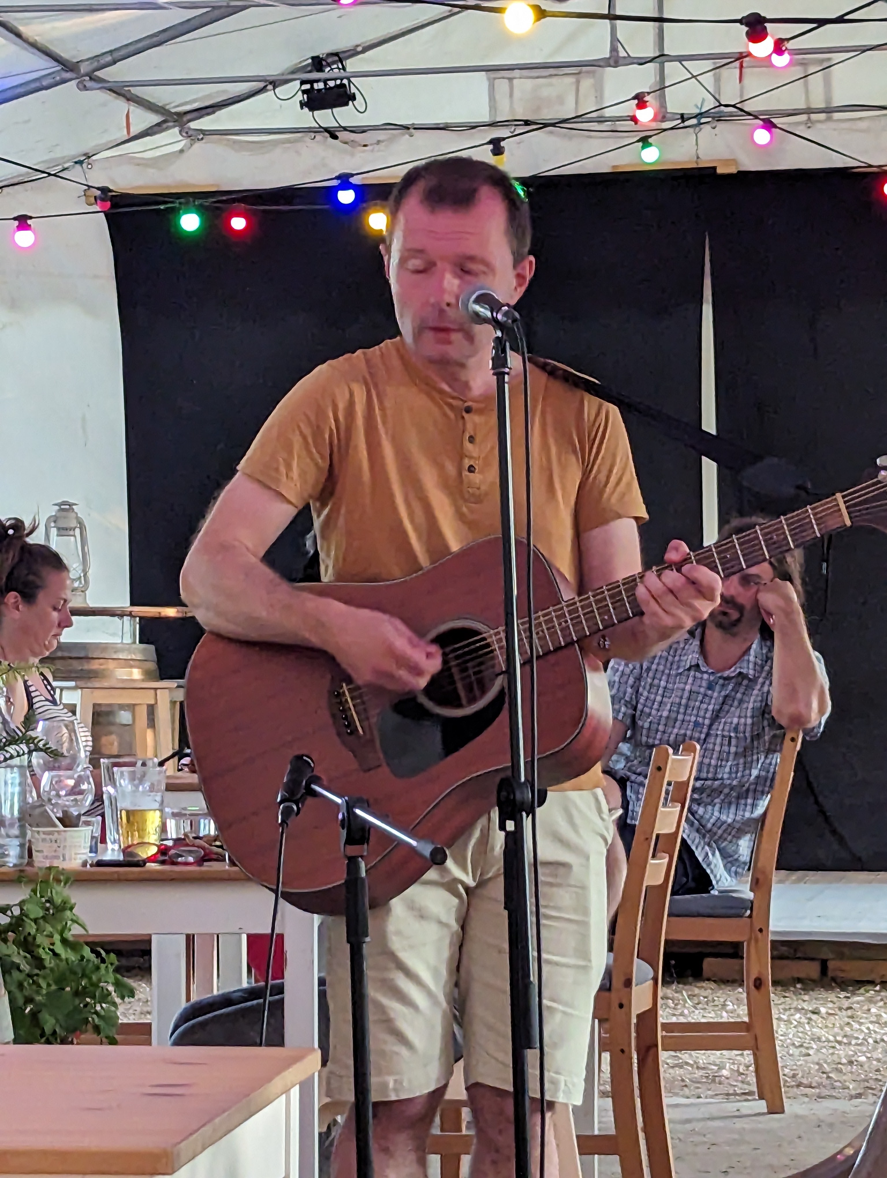 Lieu très agréable au bord de l'eau. Bonne programmation de concert et menu adapté au concept concert: burgers/planche. J aurai préféré manger sur des chaises plus confortables, nous étions sur des bancs.