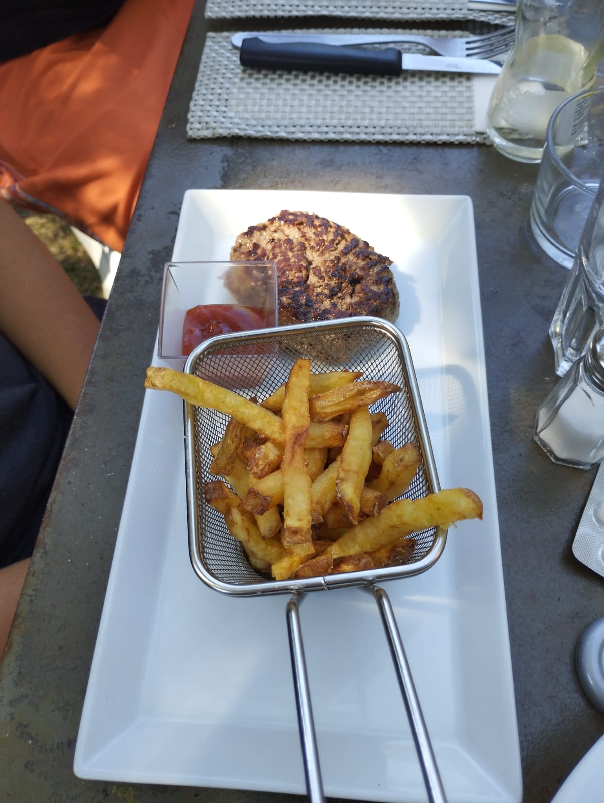 Très bon restaurant ! Un cadre idéal surtout par beau temps. Nous avons choisi la salade périgourdine qui est très copieuse, ainsi qu'un burger au comté d'une très bonne qualité. Vous pouvez y aller sans peur !