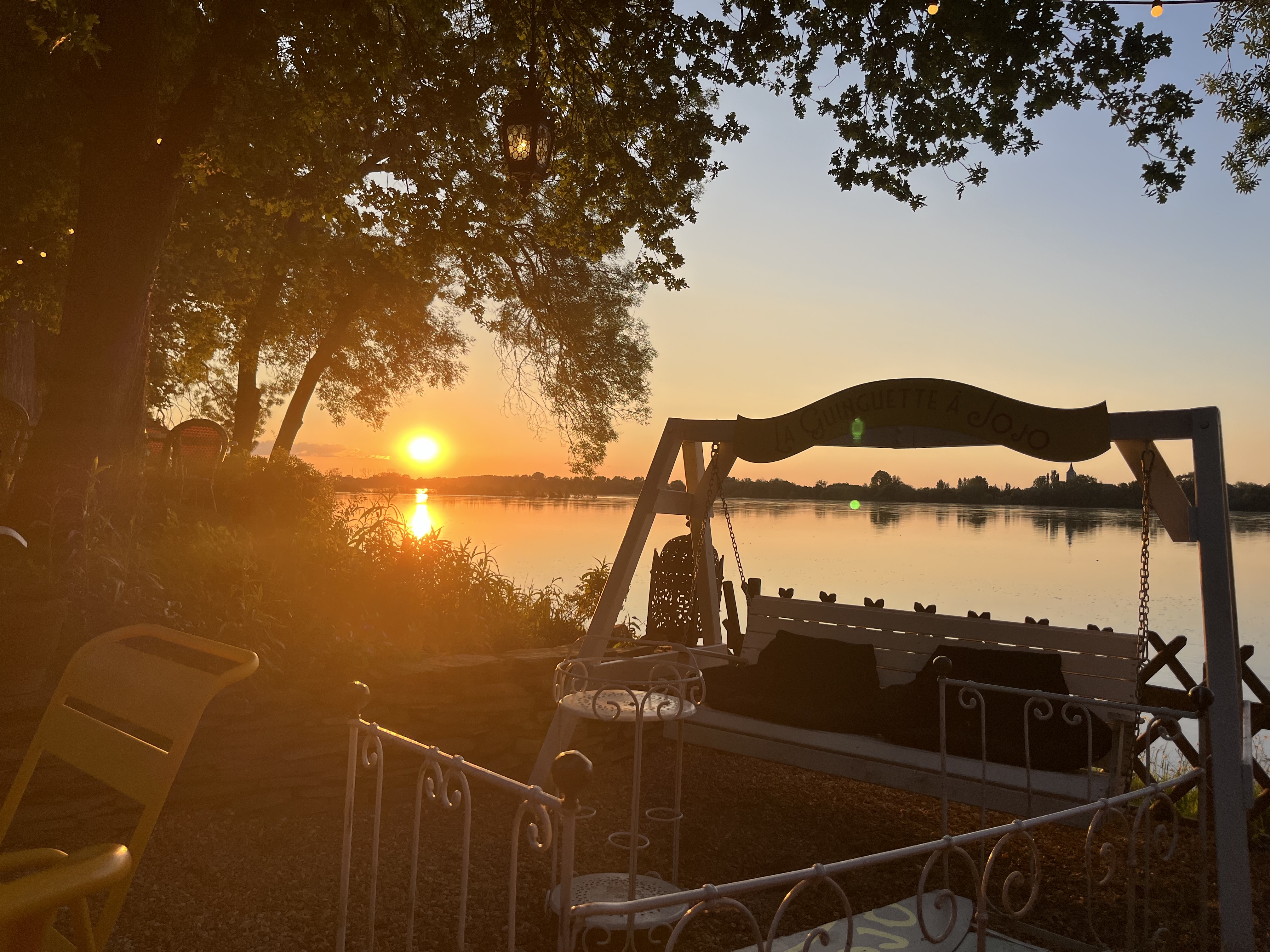 C’est lieu agréable et reposant au bord de la loire. Sous les tonnelles j’ai aussi apprécié le coucher du soleil et son reflet dans l’eau. Aussi bien l’accueil, le dîner et le service, tout était parfait.
